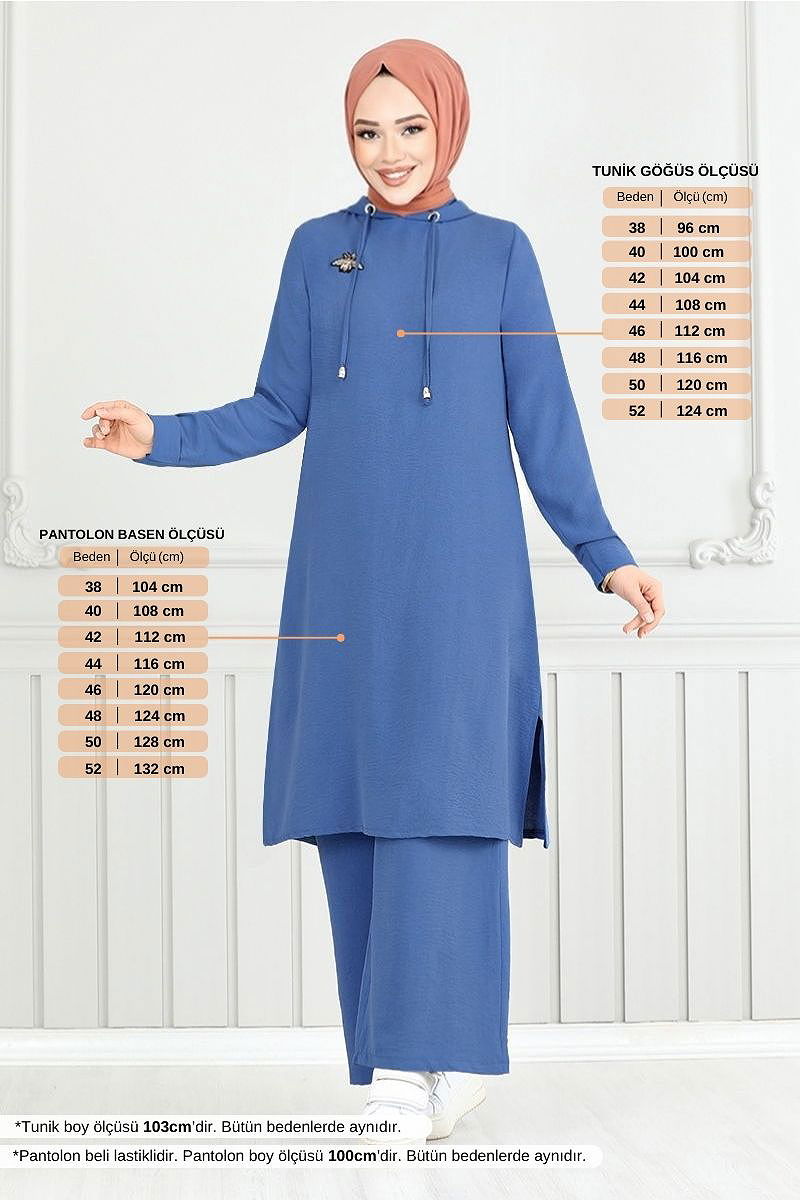 المنتج لديه ياقة مع قبعة. البلوز تحتوي على فتحة. غير مبطنة. تم خياطة القبعة مع المنتج الشعار تم وضعه بطريقة اللصق خصر البنطال مرن. قد يكون هناك اختلاف في الدرجة اللونية في المنتج بسبب التقاط الصور الفوتوغرافية.
