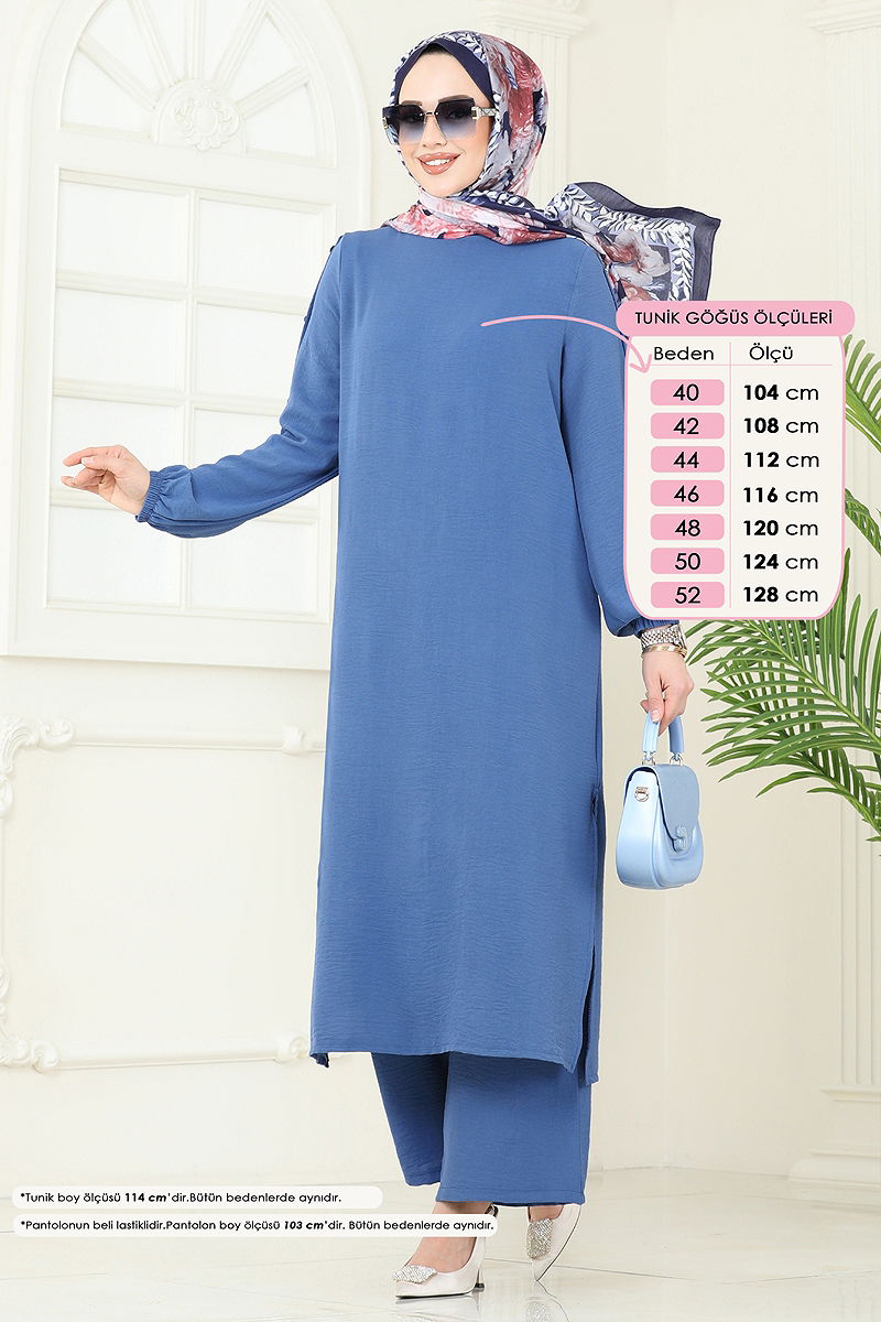 يوجد زر يمكن استخدامه من الخلف. المنتج لديه ياقة دائرية. البلوز تحتوي على فتحة. غير مبطنة. الأزرار هي إكسسوارات. خصر البنطال مرن. السوار مطاطي. قد يكون هناك اختلاف في الدرجة اللونية في المنتج بسبب التقاط الصور الفوتوغرافية.