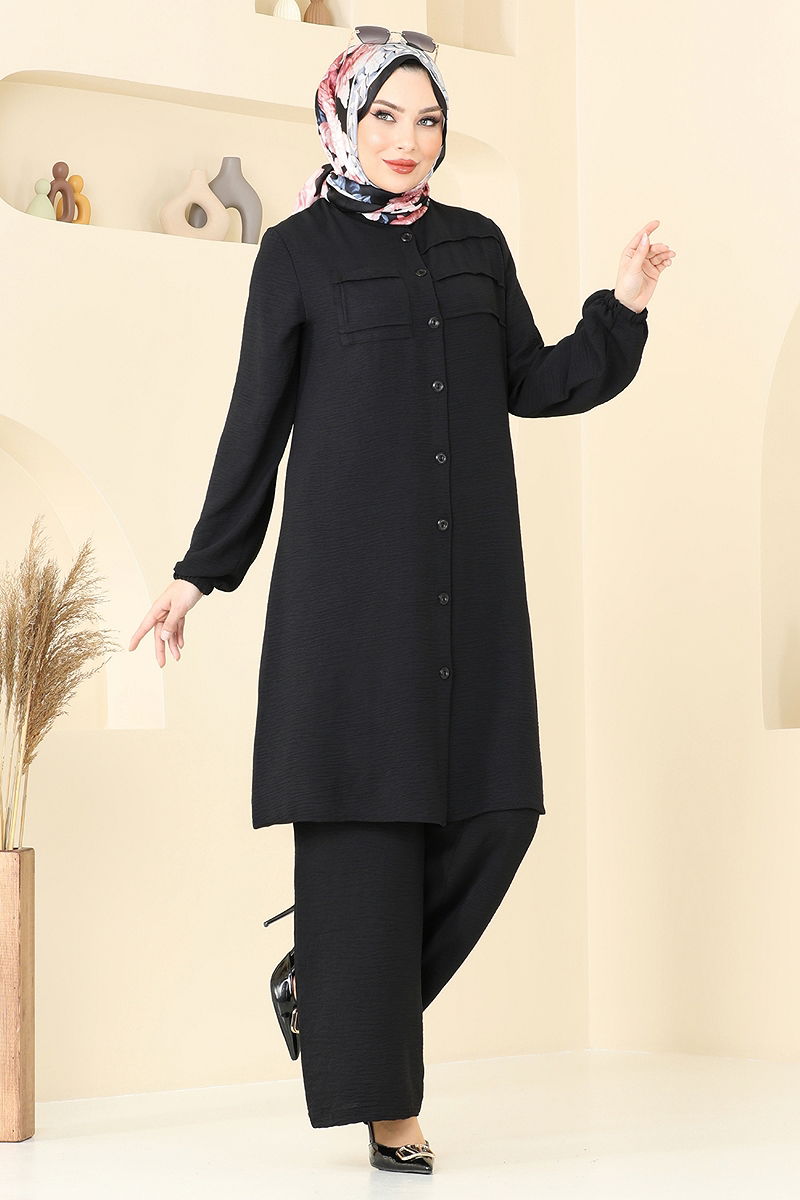 Product Feature : It is a new season hijab fashion product. The product has a Half Judge collar. The product has From the front buttons. Unlined. Blouse is not included. Sample combination is made with the blouse to show the intended use of the product. The chest pocket is active. The waist of the trousers is elastic. The cuff is rubberized. There may be a tonal difference in the product due to concept photo shoots.