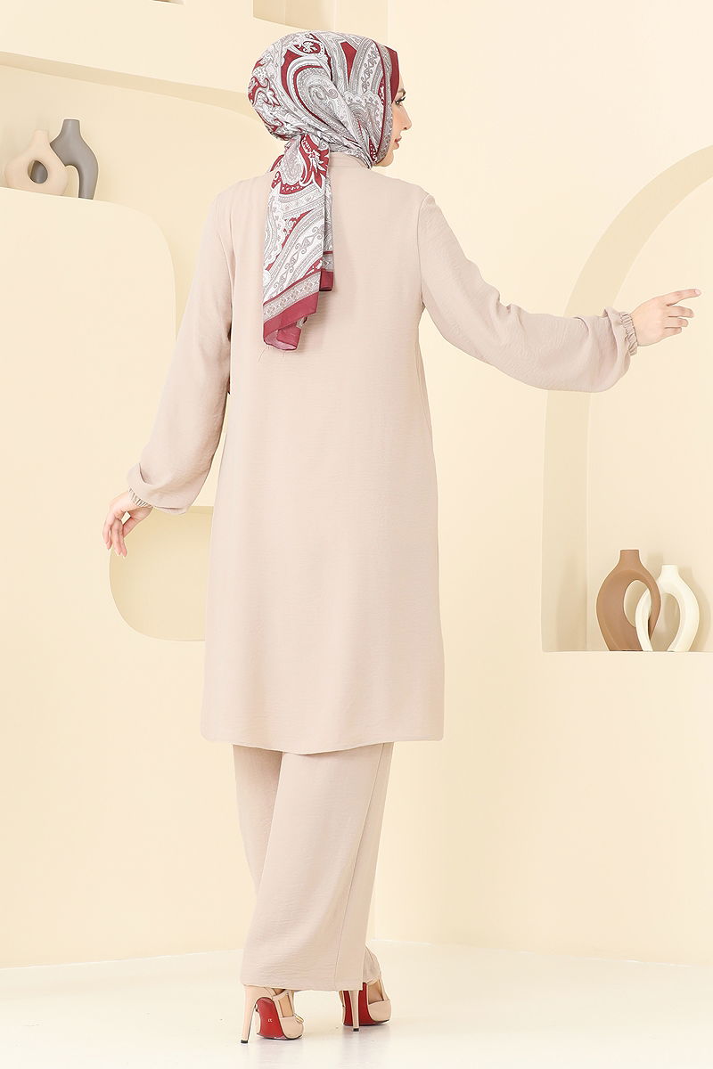 المنتج لديه ياقة نصف بيضوية. المنتج به أزرار من الأمام. غير مبطنة. البلوزة غير متضمنة. صُنعت عينة من المجموعة مع البلوزة لإظهار الاستخدام المقصود للمنتج. الجيب الصدري نشط. خصر البنطال مرن. السوار مطاطي. قد يكون هناك اختلاف في الدرجة اللونية في المنتج بسبب التقاط الصور الفوتوغرافية.