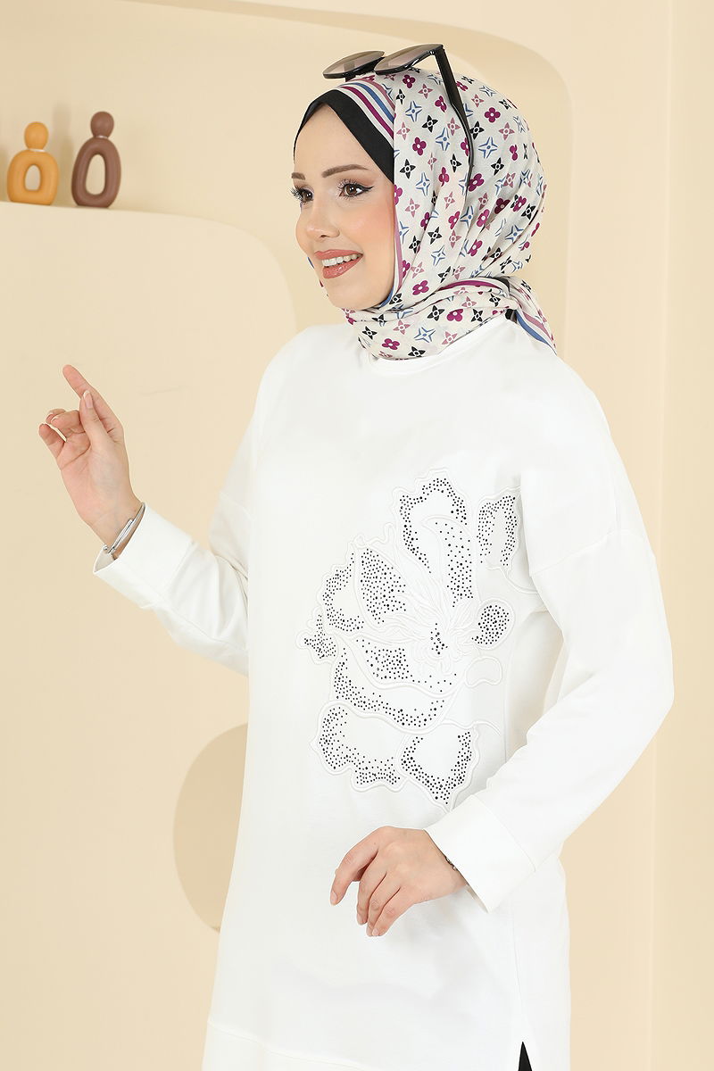 المنتج لديه ياقة دائرية. البلوز تحتوي على فتحة. غير مبطنة. يتم خياطة تفاصيل التطريز ولصق الأحجار. خصر البنطال مرن. قد يكون هناك اختلاف في الدرجة اللونية في المنتج بسبب التقاط الصور الفوتوغرافية.