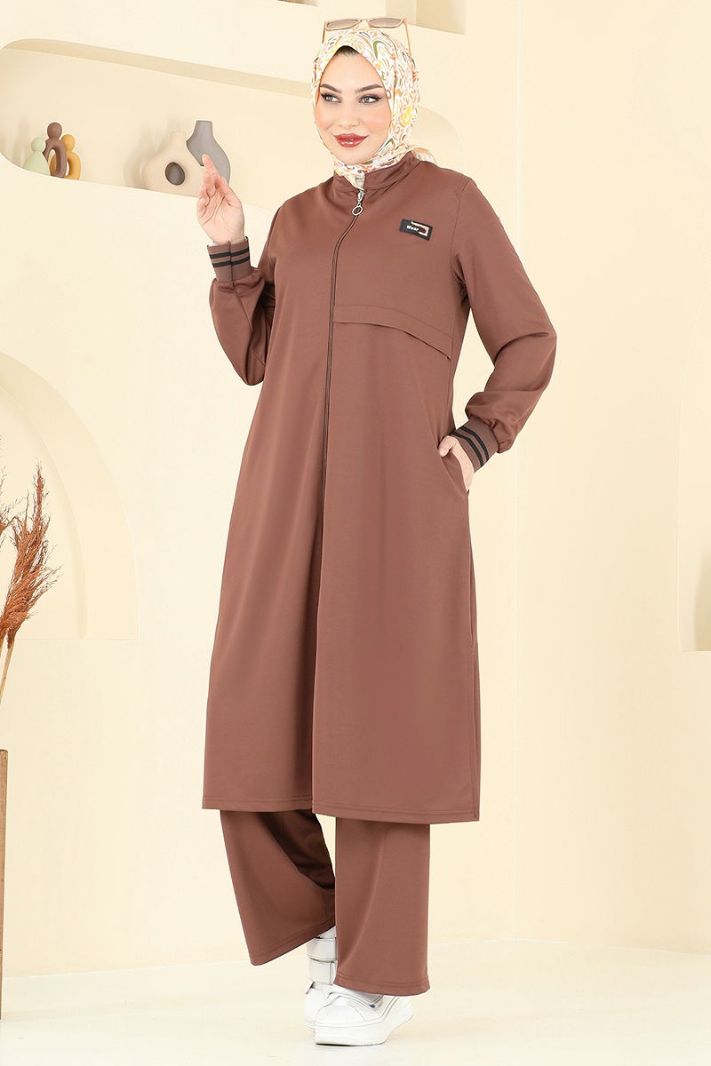 المنتج لديه ياقة نصف بيضوية. البلوز تحتوي على فتحة. غير مبطنة. المنتج به سحاب في جزء من الأمام. تم خياطة الشعار البلوزة غير متضمنة. صُنعت عينة من المجموعة مع البلوزة لإظهار الاستخدام المقصود للمنتج. خصر البنطال مرن. قد يكون هناك اختلاف في الدرجة اللونية في المنتج بسبب التقاط الصور الفوتوغرافية.