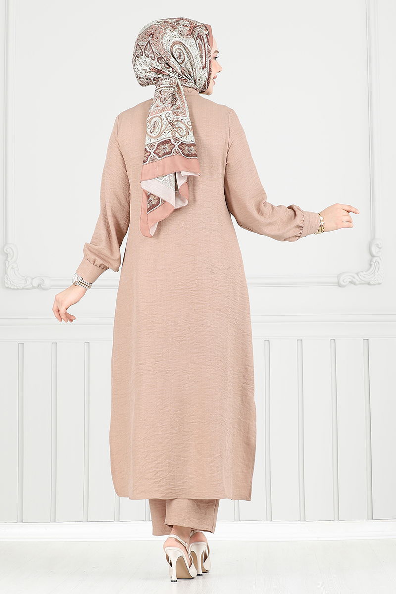 المنتج لديه ياقة نصف بيضوية. المنتج به أزرار من الأمام. البلوز تحتوي على فتحة. غير مبطنة. الملحقات غير متضمنة. البلوزة غير متضمنة. صُنعت عينة من المجموعة مع البلوزة لإظهار الاستخدام المقصود للمنتج. خصر البنطال مرن. أزرار الكفة نشطة. قد يكون هناك اختلاف في الدرجة اللونية في المنتج بسبب التقاط الصور الفوتوغرافية.