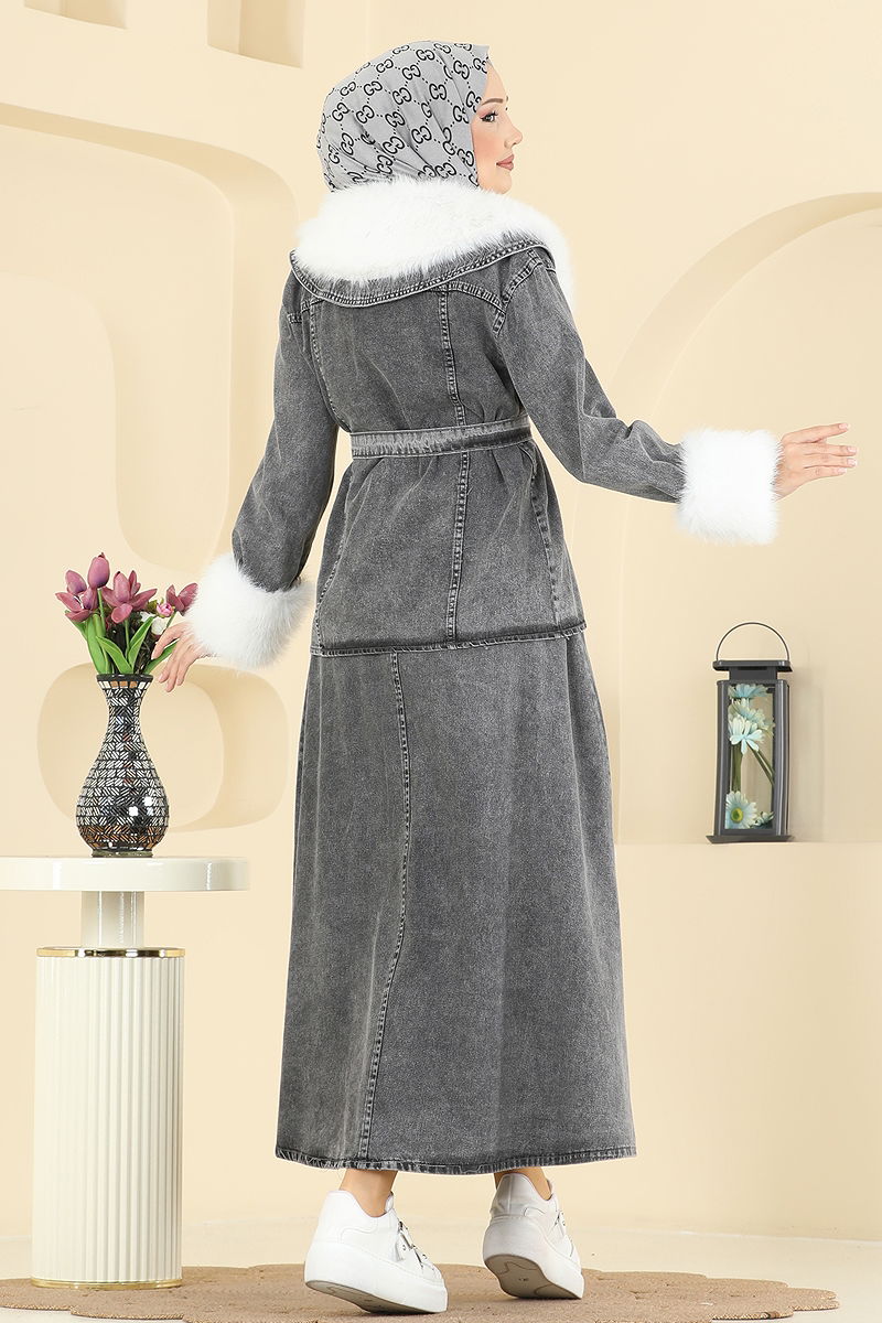 المنتج لديه ياقة الفراء. المنتج به أزرار من الأمام. غير مبطنة. يتم تضمين الفراء في المنتج، ولا يجوز استخدامه اختيارياً. الحزام متضمن، ،يمكن استخدامها حسب الرغبة .خصر التنورة مرن الاكمام مزينة بالفرو قد يكون هناك اختلاف في الدرجة اللونية في المنتج بسبب التقاط الصور الفوتوغرافية.