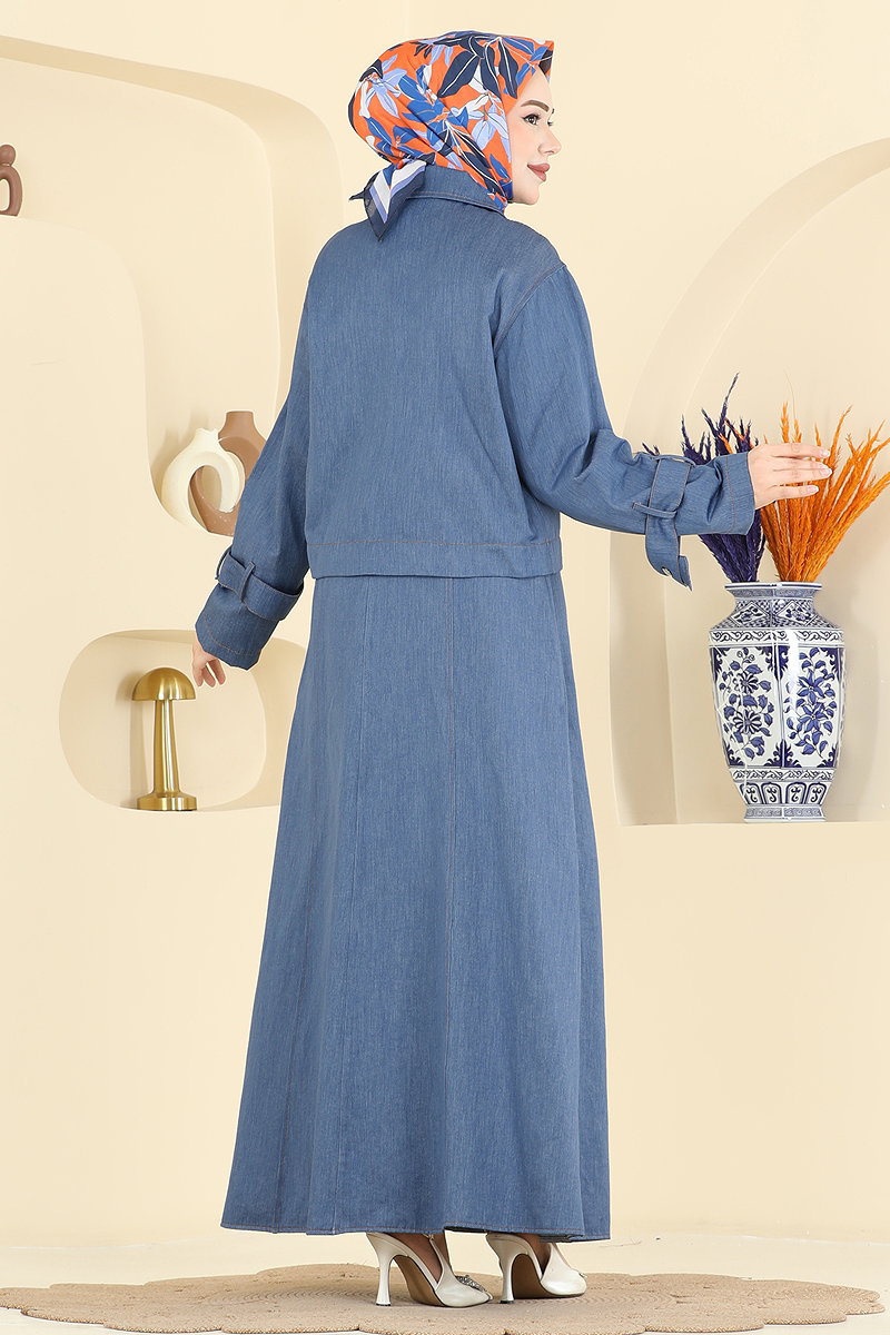 Product Description: The Tensel 2-piece Belted Suit KOMBIN is a modest attire suitable for all seasons. Washable at 30 degrees under gentle care, it ensures easy maintenance. Made from Tensel fabric, it offers comfort and breathability, blended with style. This set features a shirt collar, front button fastening, and a zippered back, making it convenient to wear. The sleeveless inner dress and removable belt allow for versatile styling. Note: the pocket detail on the jacket and dress is purely ornamental.