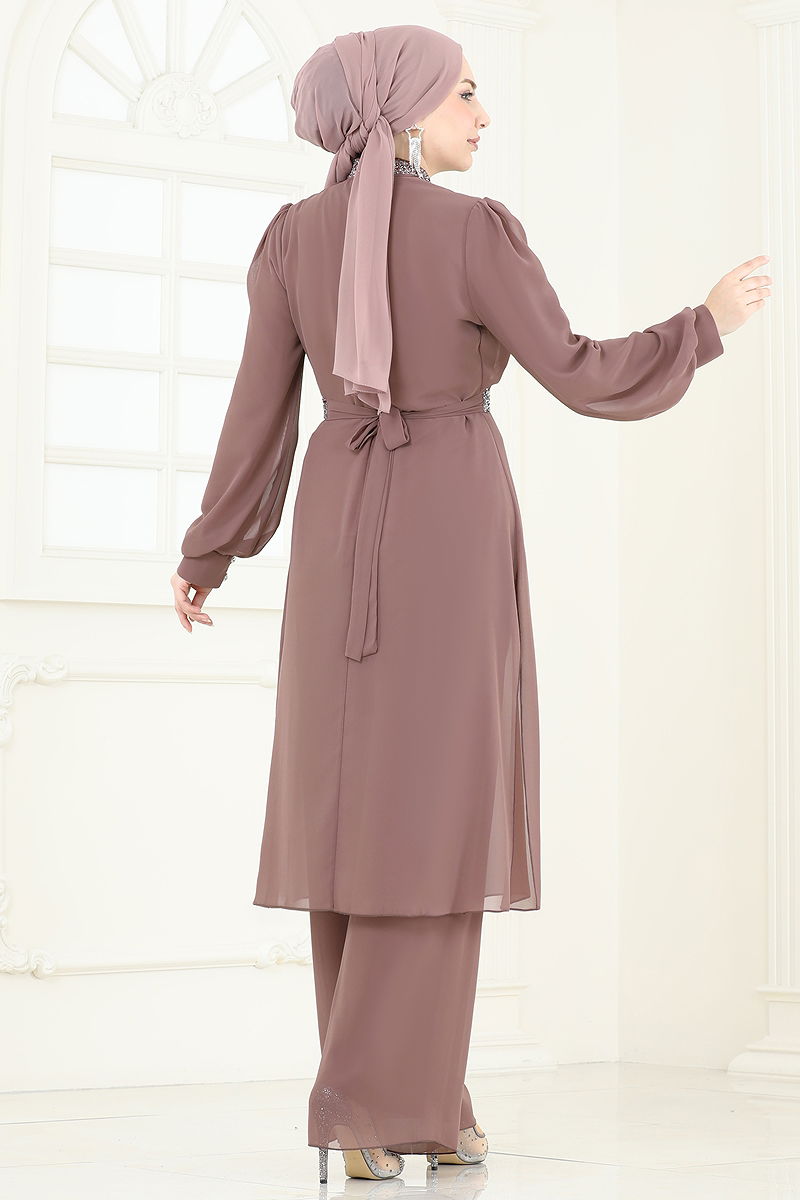 المنتج لديه ياقة بيضوية. البلوز تحتوي على فتحة. مبطنة. المنتج به سحاب في جزء من الخلف. يتم لصق الحجارة. الحزام متضمن، ،يمكن استخدامها حسب الرغبة خصر البنطال مرن. أزرار الكفة نشطة. قد يكون هناك اختلاف في الدرجة اللونية في المنتج بسبب التقاط الصور الفوتوغرافية.