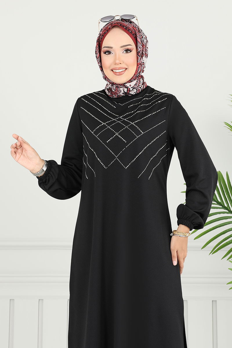 Product Feature : It is a new season hijab fashion product. The product has a Cycling collar. The tunic has a side slash.. Unlined. The stones are glued. The waist of the trousers is elastic. The cuff is rubberized. There may be a tonal difference in the product due to concept photo shoots.