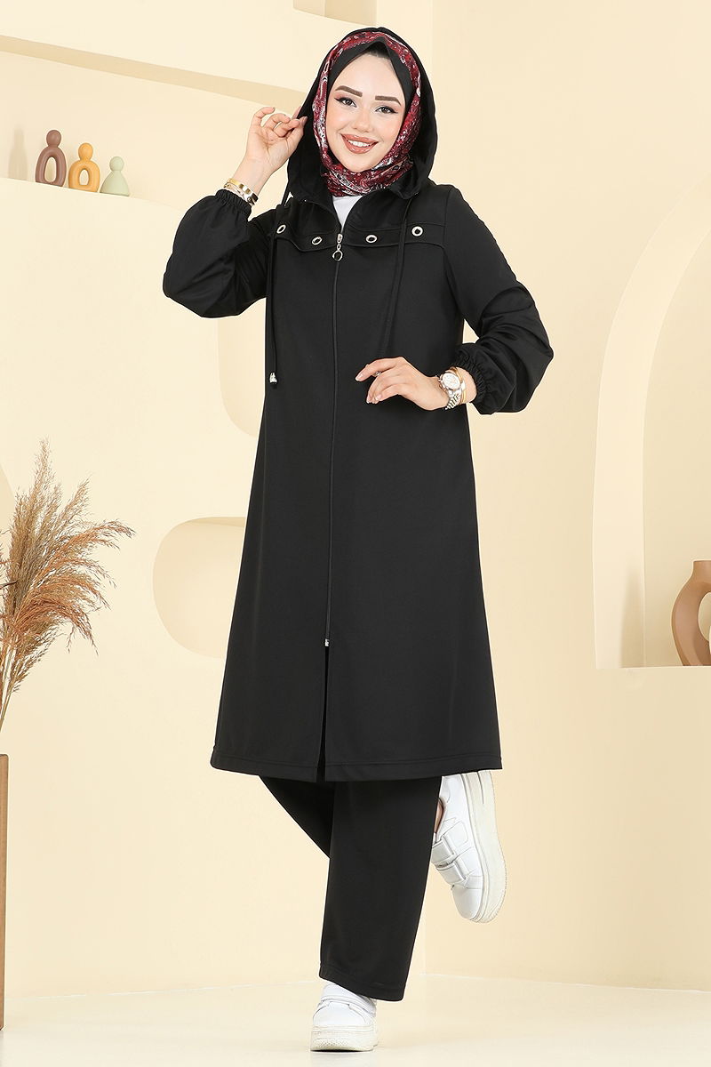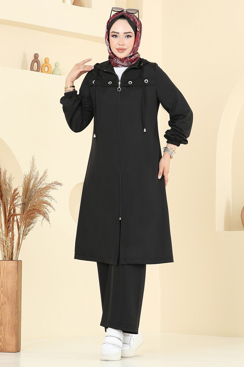 المنتج لديه ياقة مع قبعة. غير مبطنة. المنتج به سحاب في جزء من الأمام. تم خياطة القبعة مع المنتج خصر البنطال مرن. السوار مطاطي. قد يكون هناك اختلاف في الدرجة اللونية في المنتج بسبب التقاط الصور الفوتوغرافية.