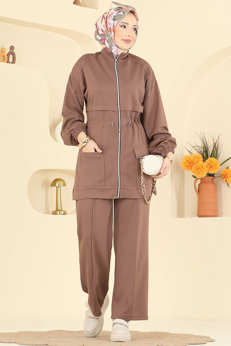 يتميز بخصر ذو أربطة. المنتج لديه ياقة نصف بيضوية. غير مبطنة. المنتج به سحاب في جزء من الأمام. الجيب متاح. خصر البنطال مرن. السوار مطاطي. قد يكون هناك اختلاف في الدرجة اللونية في المنتج بسبب التقاط الصور الفوتوغرافية.