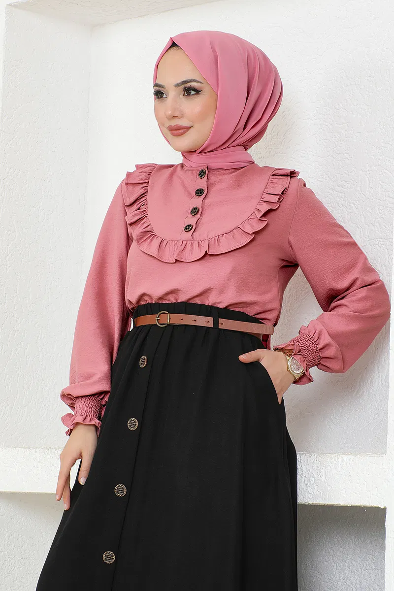 Product Feature :It is a new season hijab style product. (Unlined.)Cycling Collar.It has a functional buttons.Belt is included, can be used optionally.The cuff is rubberized and pleated.The waist of the skirt is elasticButtons are useableThere may be a tonal difference in the product color due to the concept shots.