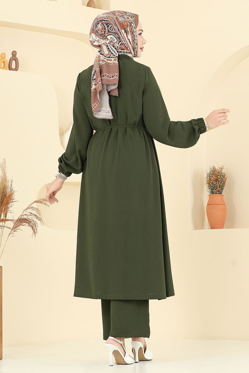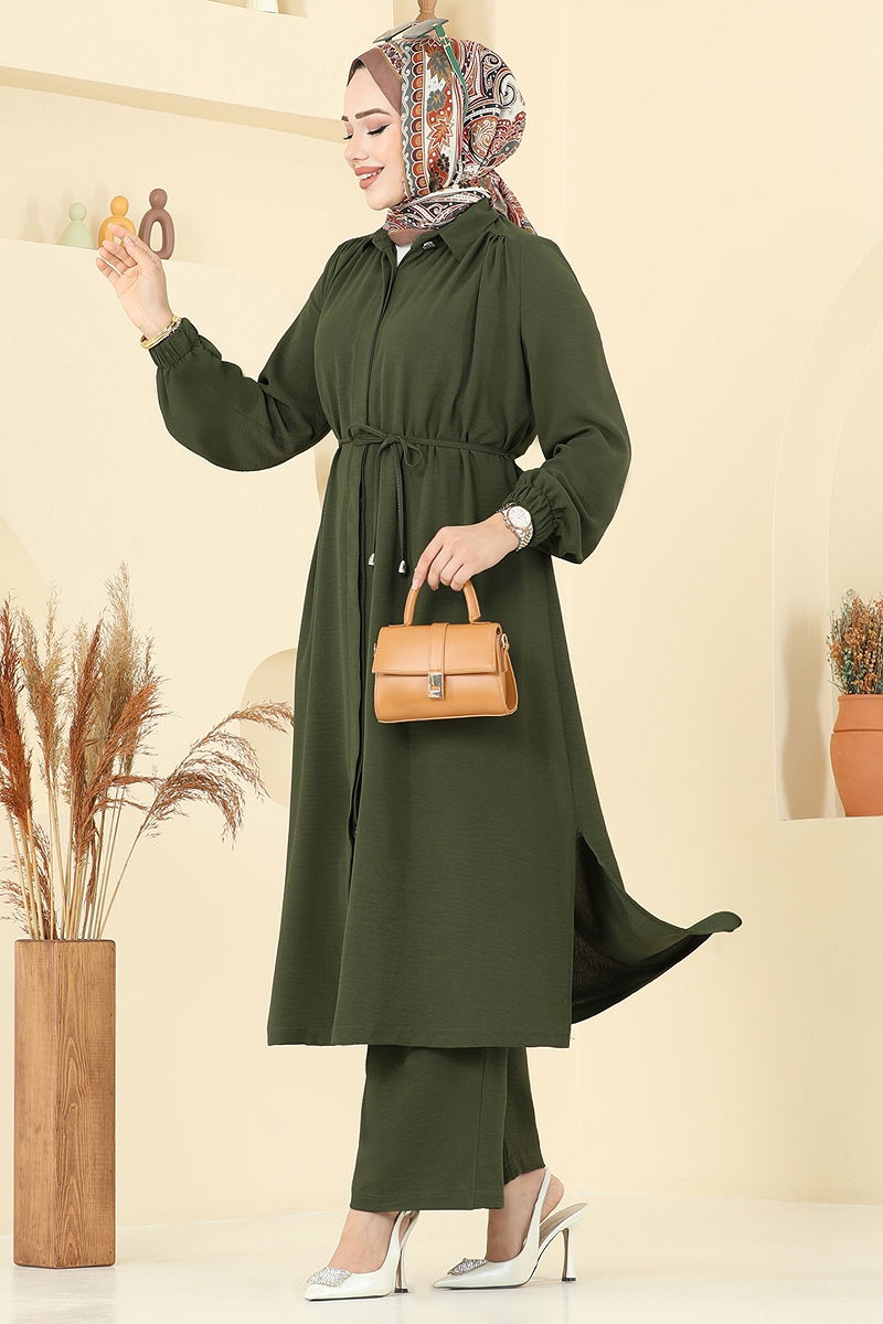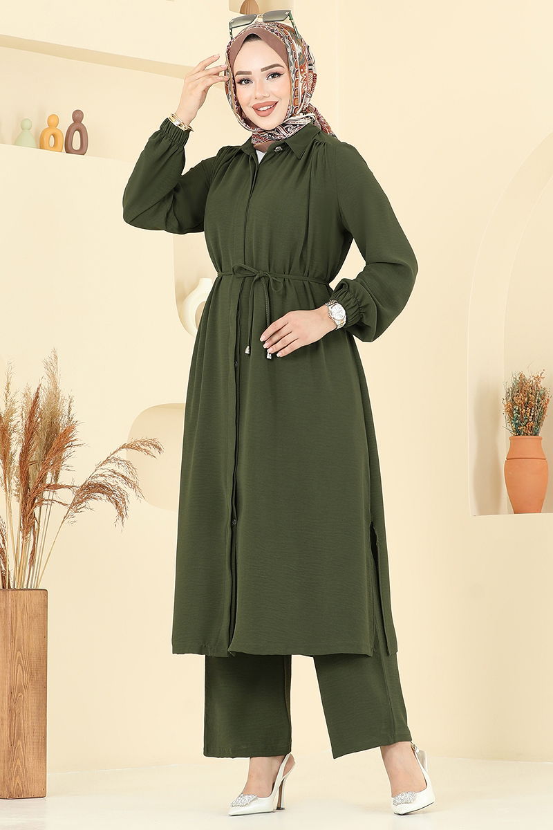 Product Feature : It is a new season hijab fashion product. The product has a Shirt collar. The product has Secret buttons. The tunic has a side slash.. Unlined. Lacing is included, optional not available. The waist of the trousers is elastic. The cuff is rubberized. There may be a tonal difference in the product due to concept photo shoots.