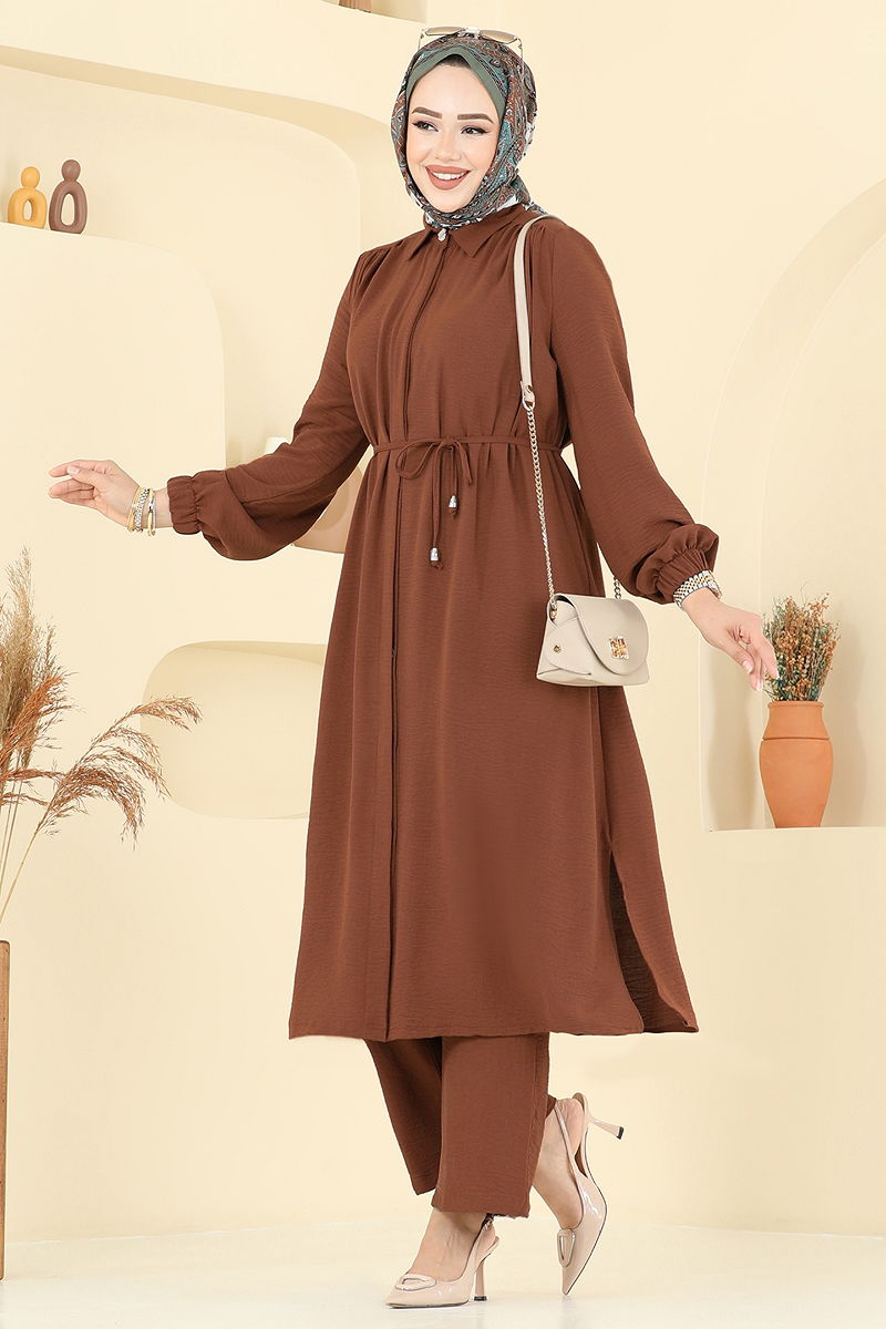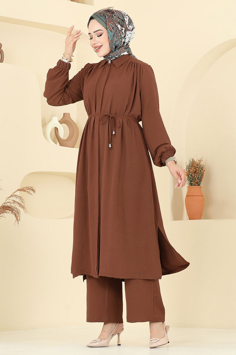 Product Feature : It is a new season hijab fashion product. The product has a Shirt collar. The product has Secret buttons. The tunic has a side slash.. Unlined. Lacing is included, optional not available. The waist of the trousers is elastic. The cuff is rubberized. There may be a tonal difference in the product due to concept photo shoots.