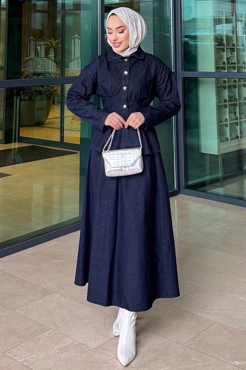 المنتج لديه ياقة القميص. المنتج به أزرار من الأمام. غير مبطنة. .خصر التنورة مرن قد يكون هناك اختلاف في الدرجة اللونية في المنتج بسبب التقاط الصور الفوتوغرافية.