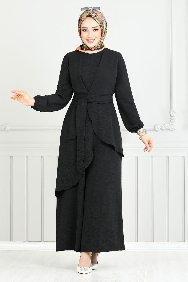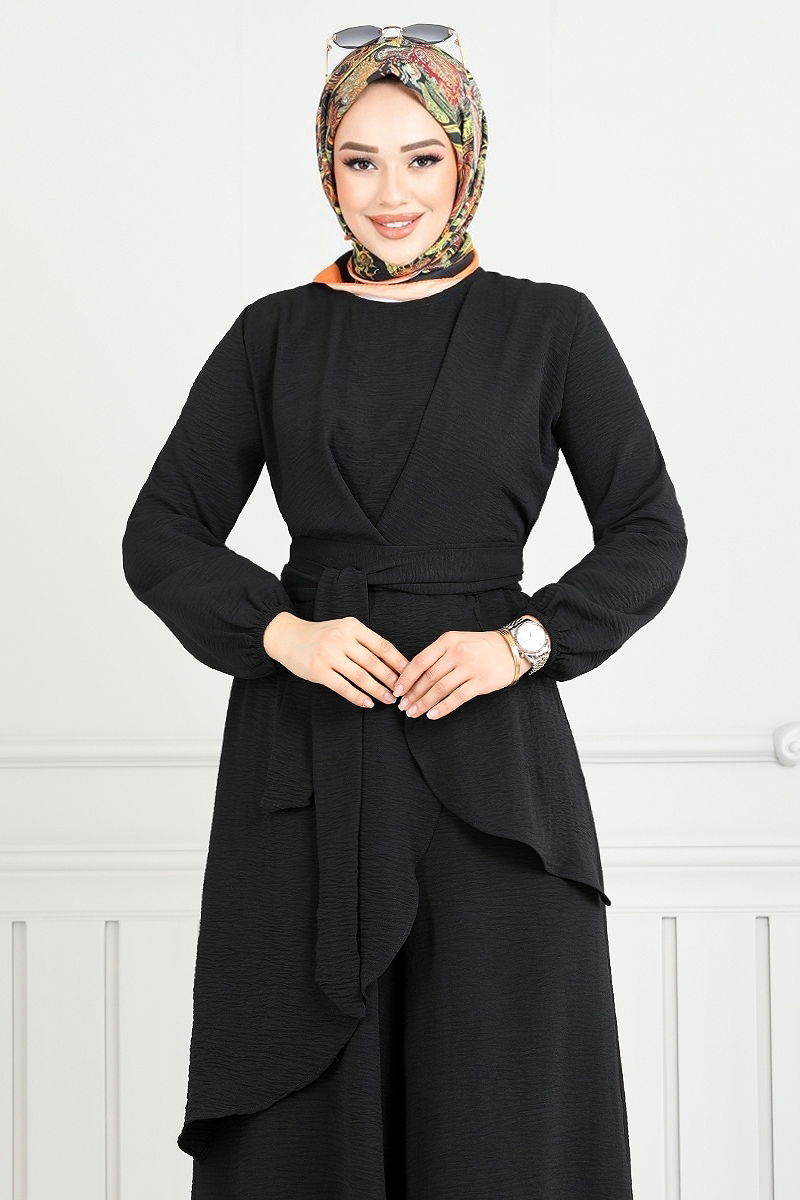 المنتج لديه ياقة دائرية. البلوز تحتوي على فتحة. غير مبطنة. المنتج به سحاب في جزء من الخلف. الحزام متضمن، ،يمكن استخدامها حسب الرغبة خصر البنطال مرن. السوار مطاطي. قد يكون هناك اختلاف في الدرجة اللونية في المنتج بسبب التقاط الصور الفوتوغرافية.