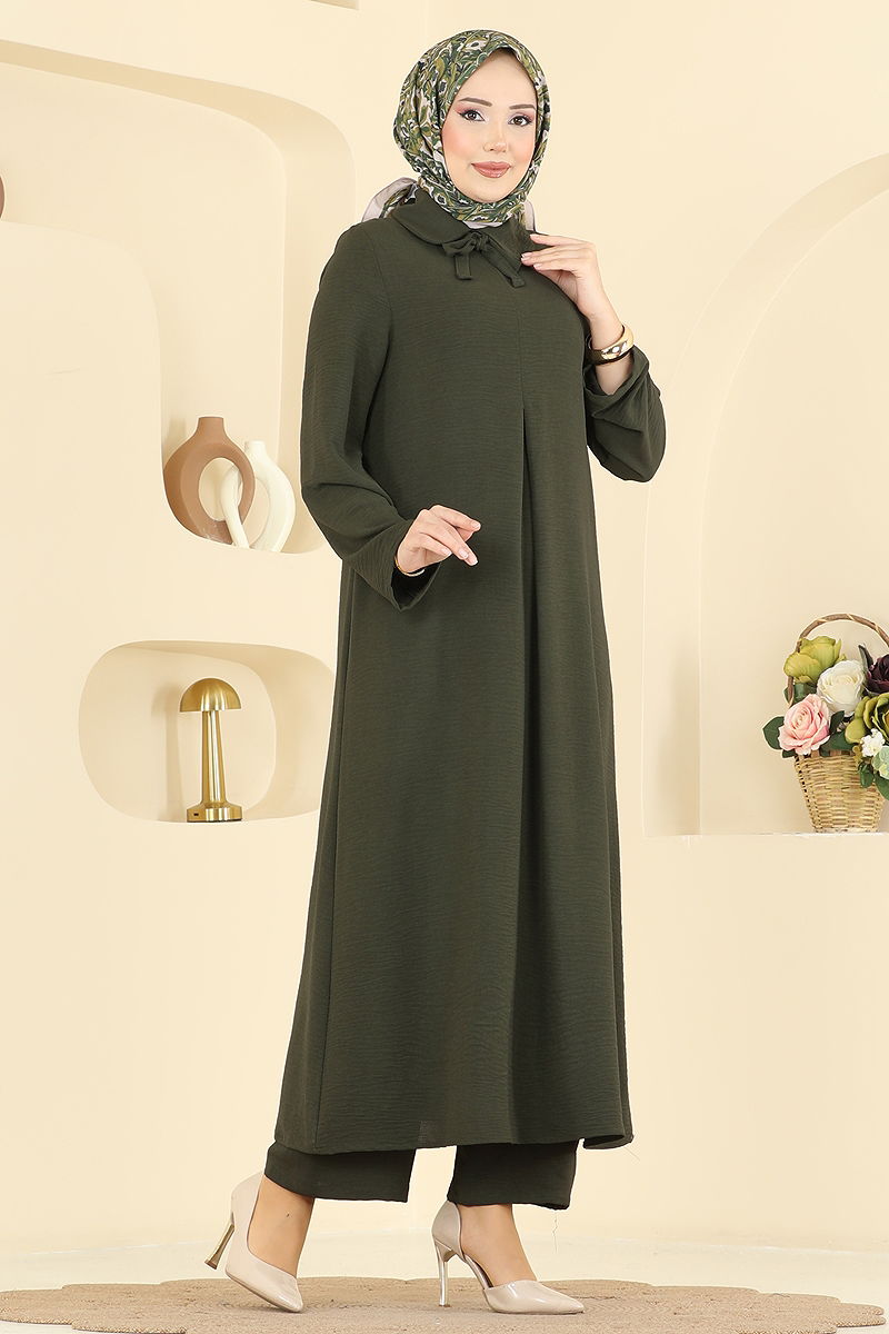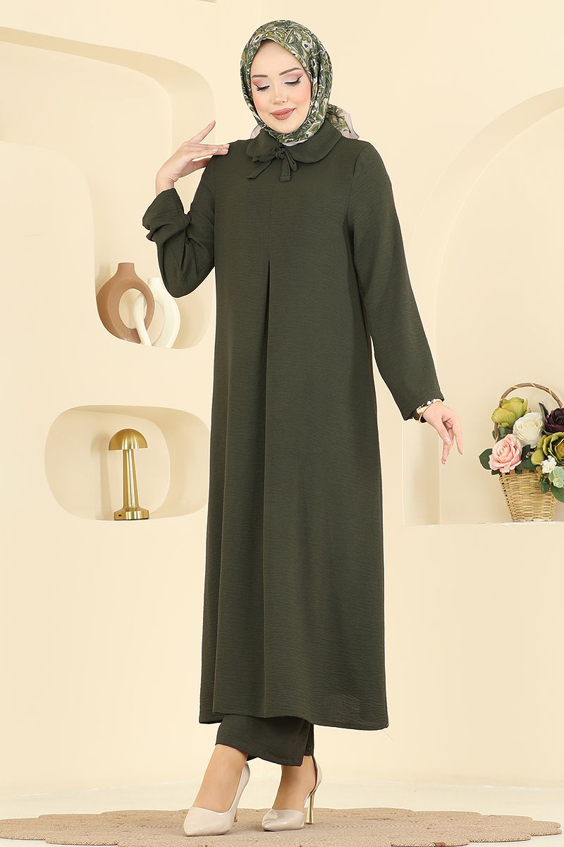 Product Feature : It is a new season hijab fashion product. It has a button that can be used from the back. The product has a Bebe collar. Unlined. Lacing details are accessories. The waist of the trousers is elastic. There may be a tonal difference in the product due to concept photo shoots.