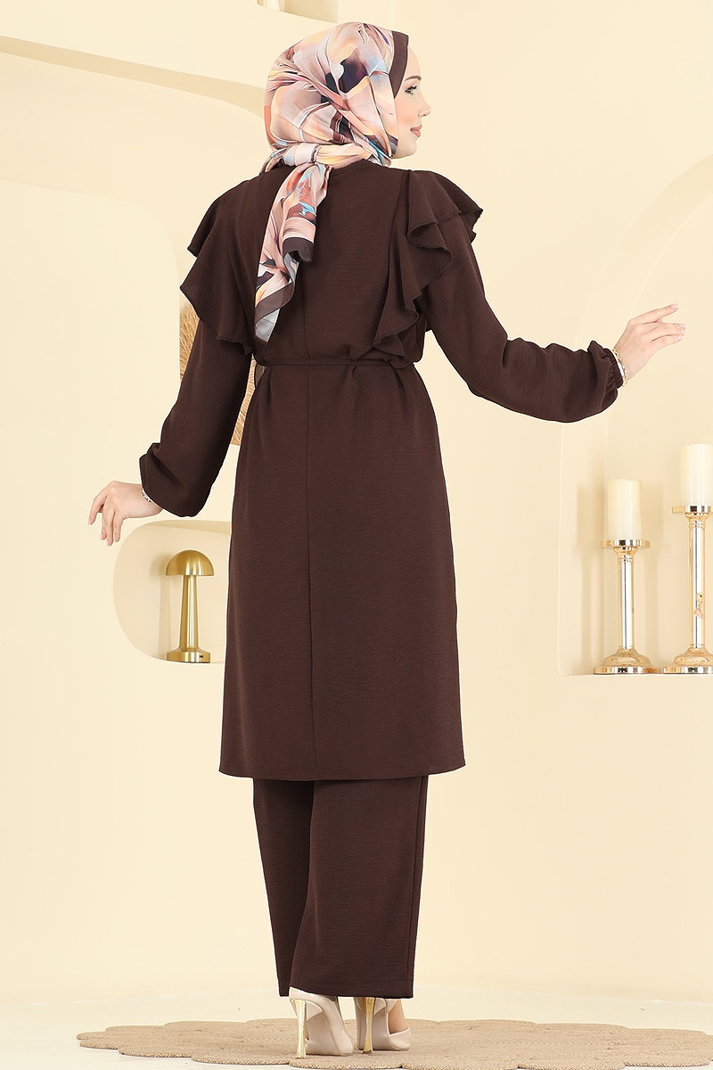 يوجد زر يمكن استخدامه من الخلف. المنتج لديه ياقة دائرية. .لا يوجد جسر حزام في المنتج الحزام متضمن، ،يمكن استخدامها حسب الرغبة خصر البنطال مرن. السوار مطاطي. قد يكون هناك اختلاف في الدرجة اللونية في المنتج بسبب التقاط الصور الفوتوغرافية.