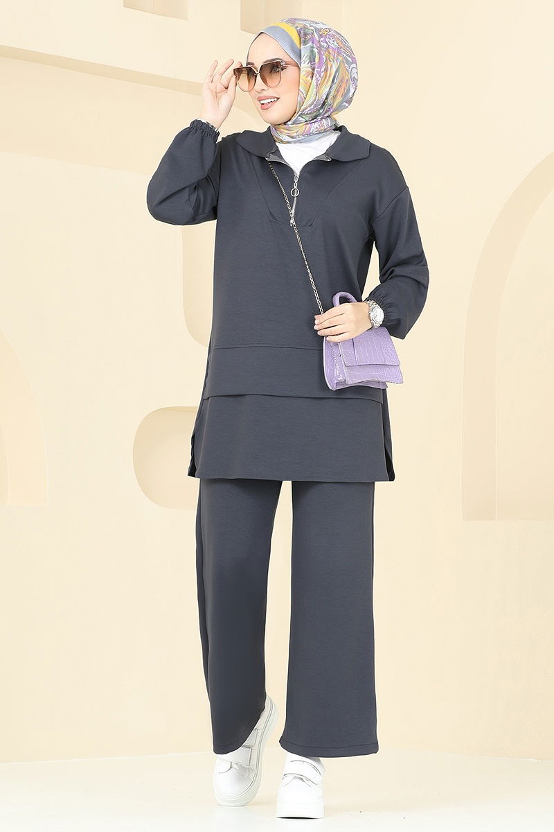 Product Feature : It is a new season hijab fashion product. It has a front zipper that can be used. The product has a Shirt collar. The tunic has a side slash.. Unlined. The waist of the trousers is elastic. The cuff is rubberized. There may be a tonal difference in the product due to concept photo shoots.