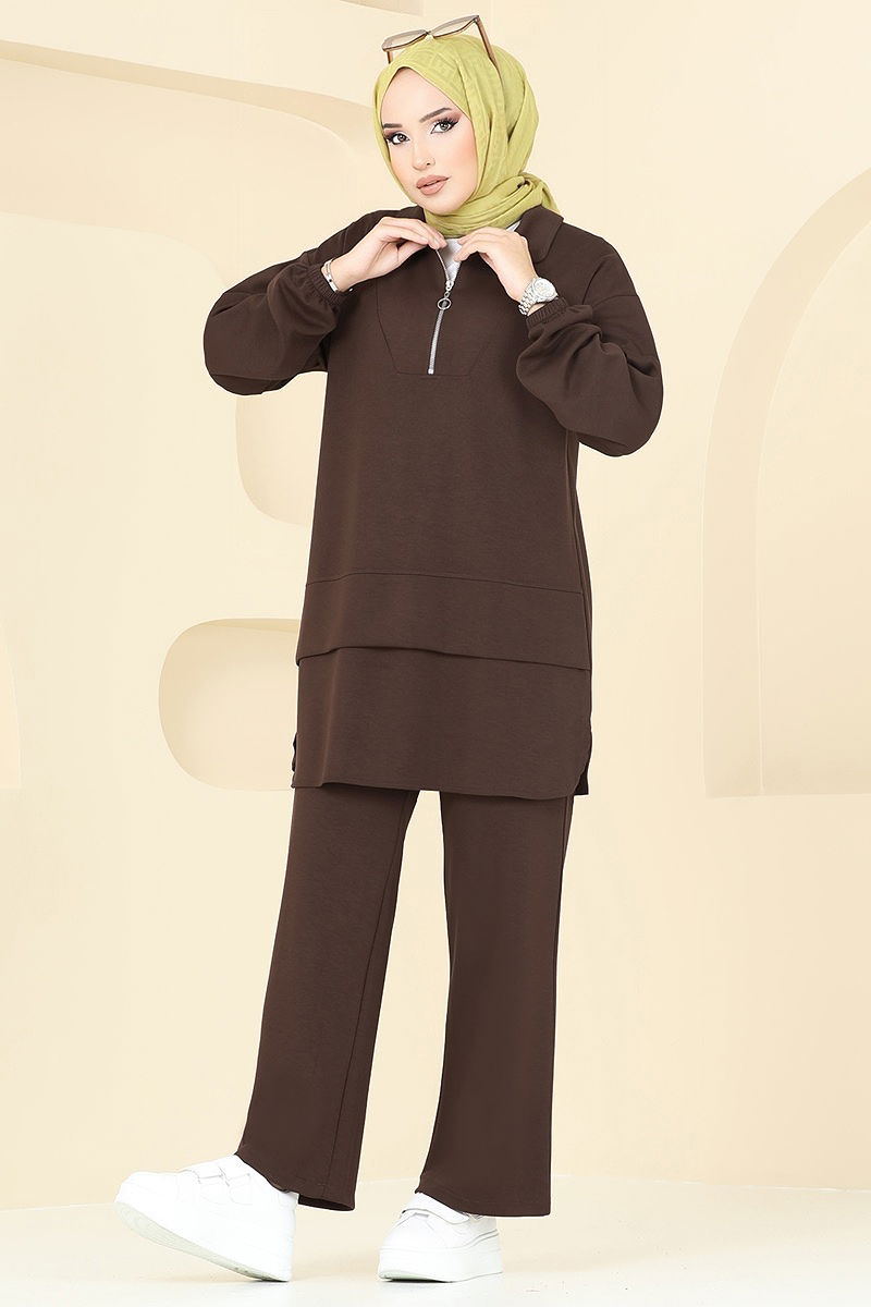 Product Feature : It is a new season hijab fashion product. It has a front zipper that can be used. The product has a Shirt collar. The tunic has a side slash.. Unlined. The waist of the trousers is elastic. The cuff is rubberized. There may be a tonal difference in the product due to concept photo shoots.