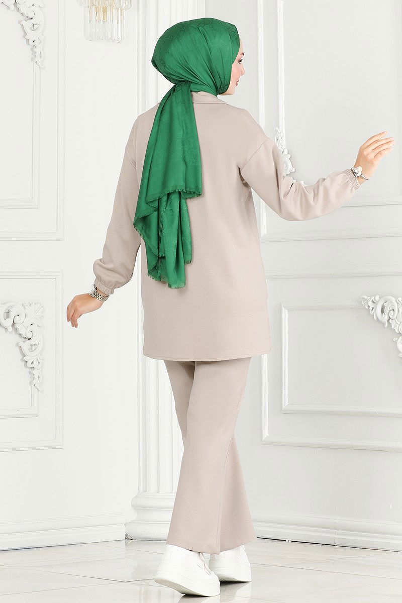Product Feature : It is a new season hijab fashion product. It has a front zipper that can be used. The product has a Shirt collar. The tunic has a side slash.. Unlined. The waist of the trousers is elastic. The cuff is rubberized. There may be a tonal difference in the product due to concept photo shoots.