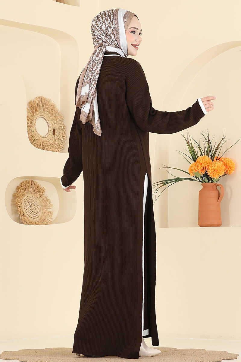 The Deep Slit Knit Set is essential for autumn and winter, with its warm knit fabric and elegant design. This modest wear piece can be washed at 30 degrees due to its delicate nature, offering both comfort and utility. Featuring a shirt collar detail and a side-slit tunic design, it offers a modern look while the elastic waist pants provide comfort all day long. The KOMBİN model is perfect for maintaining elegance in any setting.