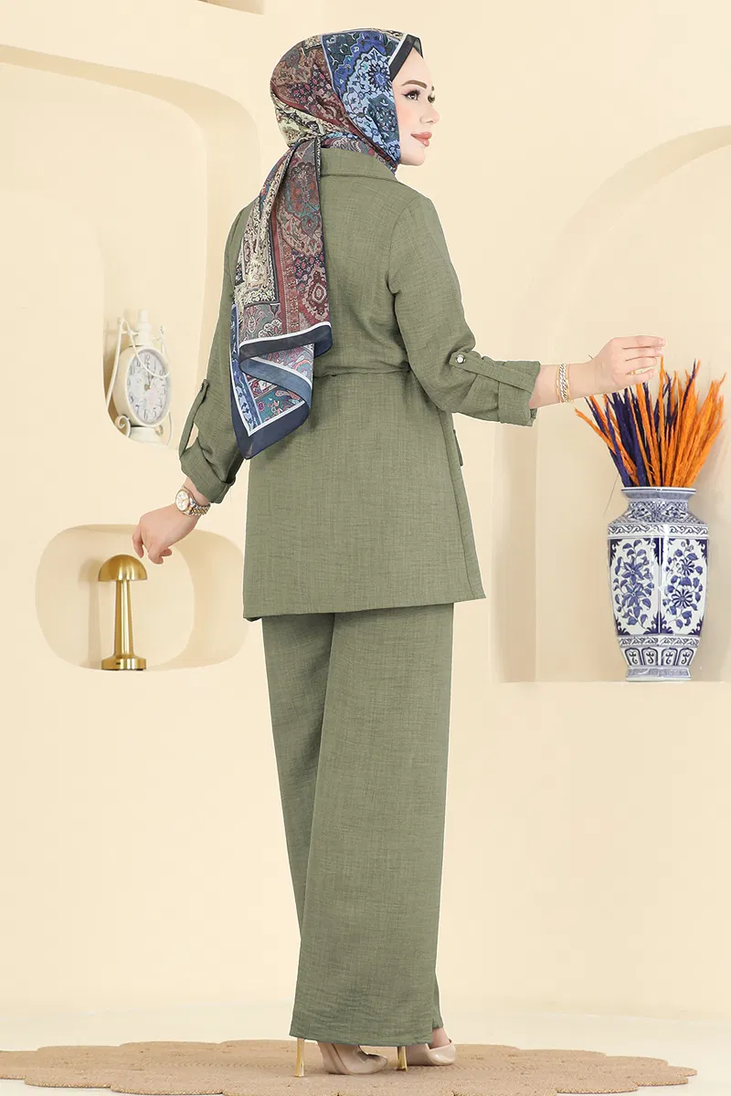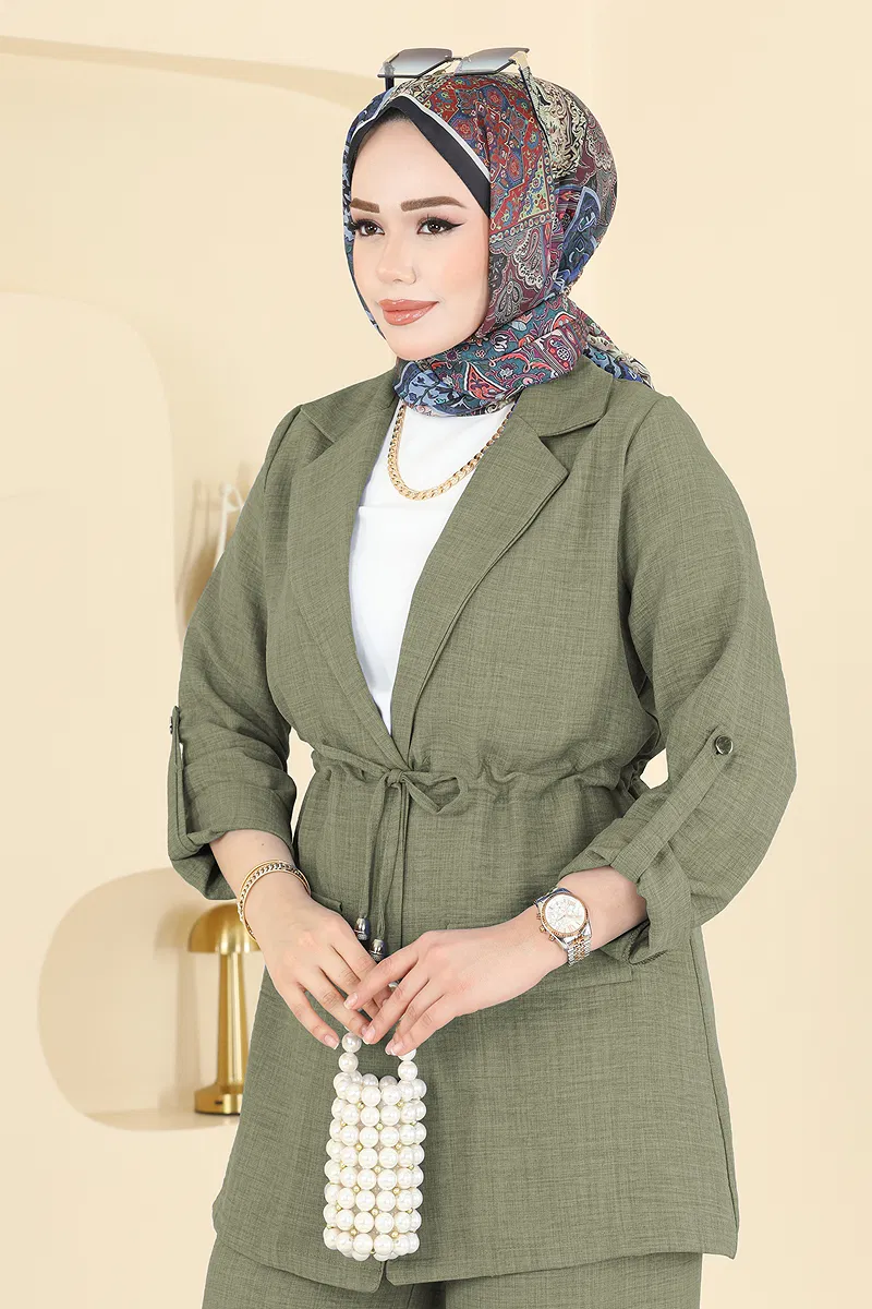 يتميز بخصر ذو أربطة. المنتج لديه ياقة السترة. غير مبطنة. تفاصيل الجيب من الملحقات. خصر البنطال مرن. .أزرار الكتّافات على الأكمام قابلة للاستخدام قد يكون هناك اختلاف في الدرجة اللونية في المنتج بسبب التقاط الصور الفوتوغرافية.
