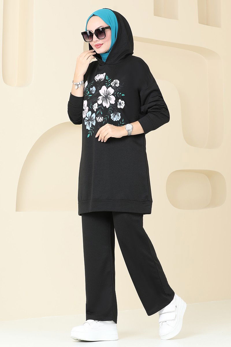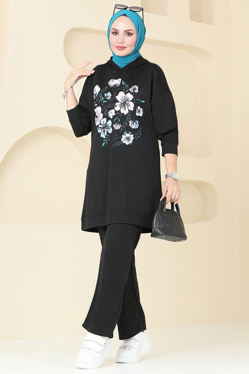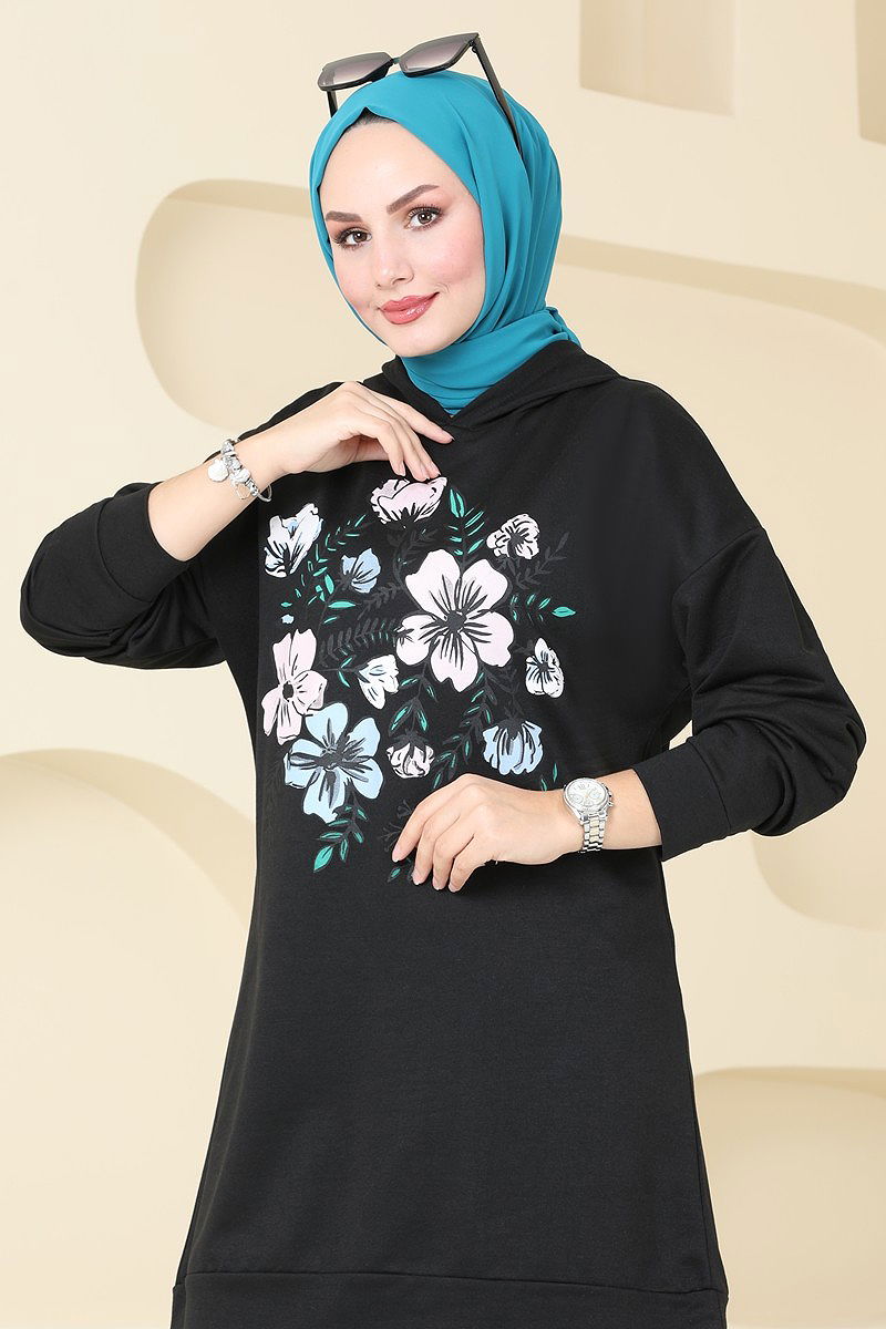 Flower Printed Stylish Set model is a hijab product. It can be used in Four Seasons season. In printed products, the product should be turned inside out and ironed from the inside out. It is made of First Class Two Thread fabric. The product has a hooded neckline. It is unlined. (The product on the model is size 38.) Details are printed.