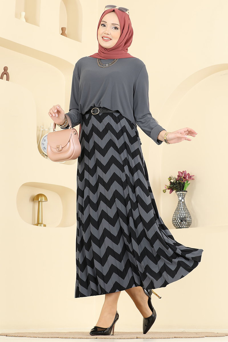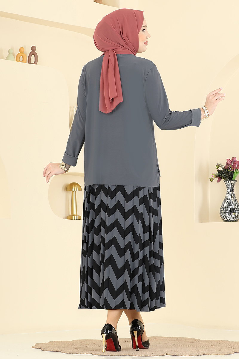 Combining elegance and comfort, the Zigzag Skirt Suit COMBO is a four-season hijab product. Made from Sandy fabric, this set is suitable for gentle wash at 30 degrees. Consisting of a bicycle neck blouse and an elastic waist skirt, this combo provides freedom of movement with a side slit on the tunic. Available in size 40 on the model, with options suitable for every size.
