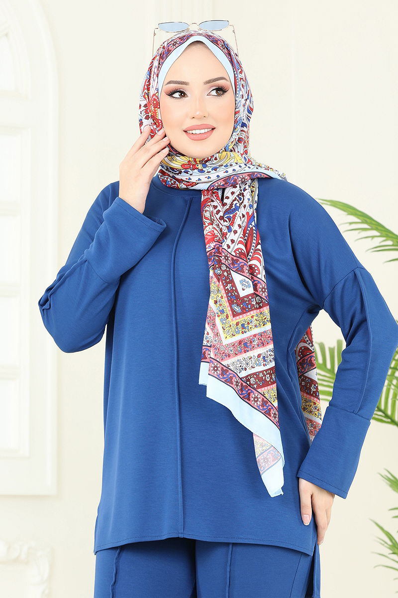 The Nervür Detail Modal Suit is an elegant and comfortable hijab wear. Suitable for all seasons, this set offers all-day comfort with its breathable modal fabric. The tunic features side slits and a bike neck, presenting a modern look, while the elastic waistband on the pants ensures a comfortable fit. Washable at 30 degrees on a gentle cycle, this combination will become a staple in your wardrobe.