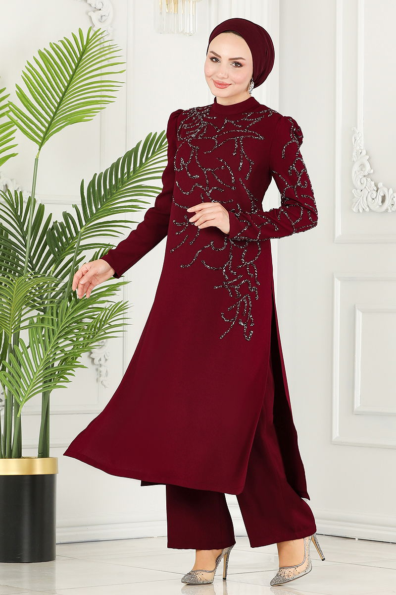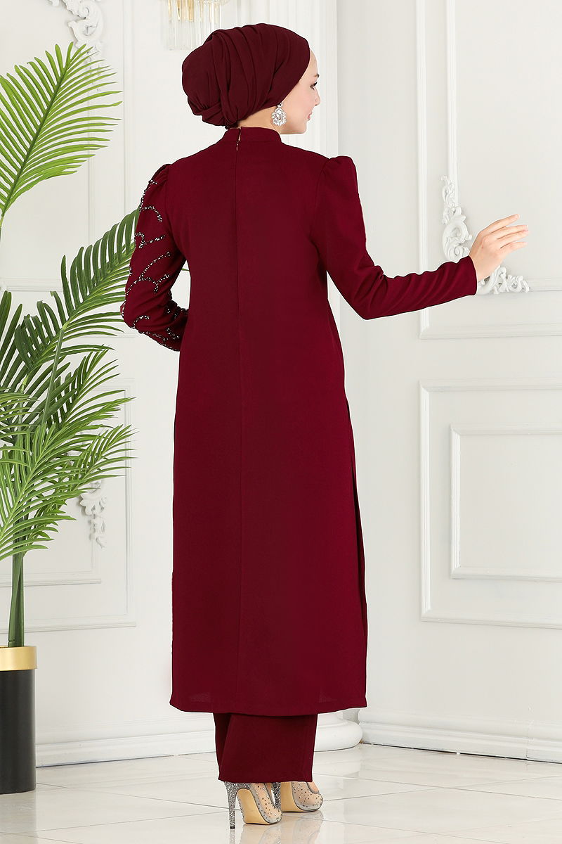 المنتج لديه ياقة نصف بيضوية. البلوز تحتوي على فتحة. غير مبطنة.. المنتج به سحاب في جزء من الخلف. يتم لصق الحجارة. خصر البنطال مرن. قد يكون هناك اختلاف في الدرجة اللونية في المنتج بسبب التقاط الصور الفوتوغرافية.