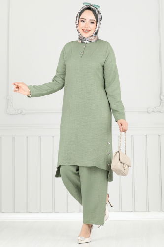 Product Feature : It is a new season hijab fashion product. The product has a Half Judge collar. The tunic has a side slash.. Unlined.. The product has a zipper at the from the back part. The stones are glued. The waist of the trousers is elastic. There may be a tonal difference in the product due to concept photo shoots.
