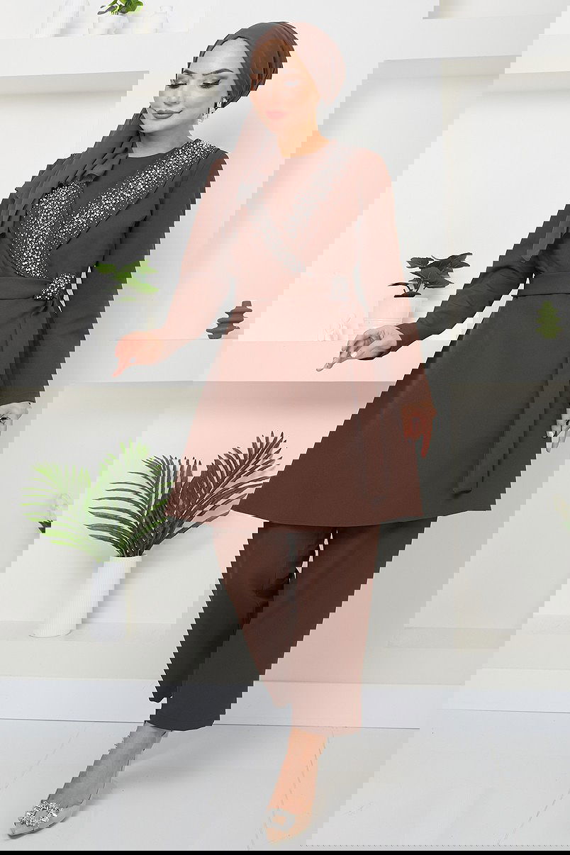 Product Feature : It is a new season hijab fashion product. The product has a Cycling collar. Unlined.. Pearl details are my pocket knife. The belt is sewn. Pants have a half elastic waist. There may be a tonal difference in the product due to concept photo shoots.