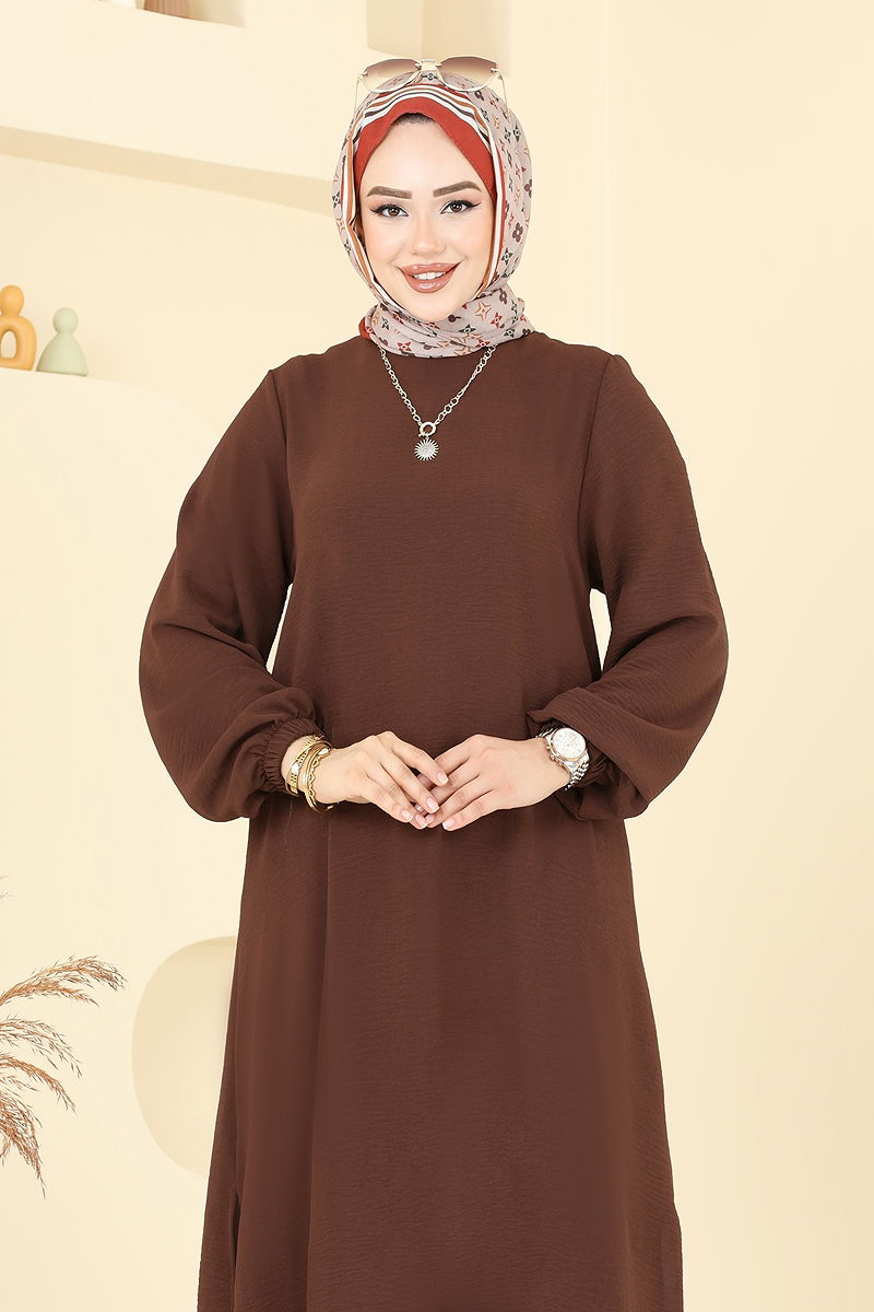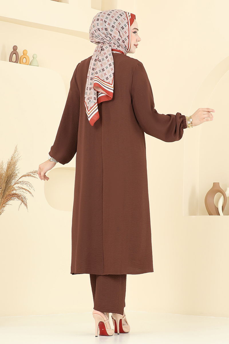 The Side Slit Aerobin Suit is a chic and modern design suitable for modest fashion enthusiasts. This outfit offers flexibility and comfort typical of Aerobin fabric, designed for all-season wear. It is washable at 30 degrees on a gentle cycle and features a bicycle neck with a side-slit tunic. The suit is practical with a zipper at the back and completed with elastic-cuffed pants, making it perfect for both everyday use and special occasions.