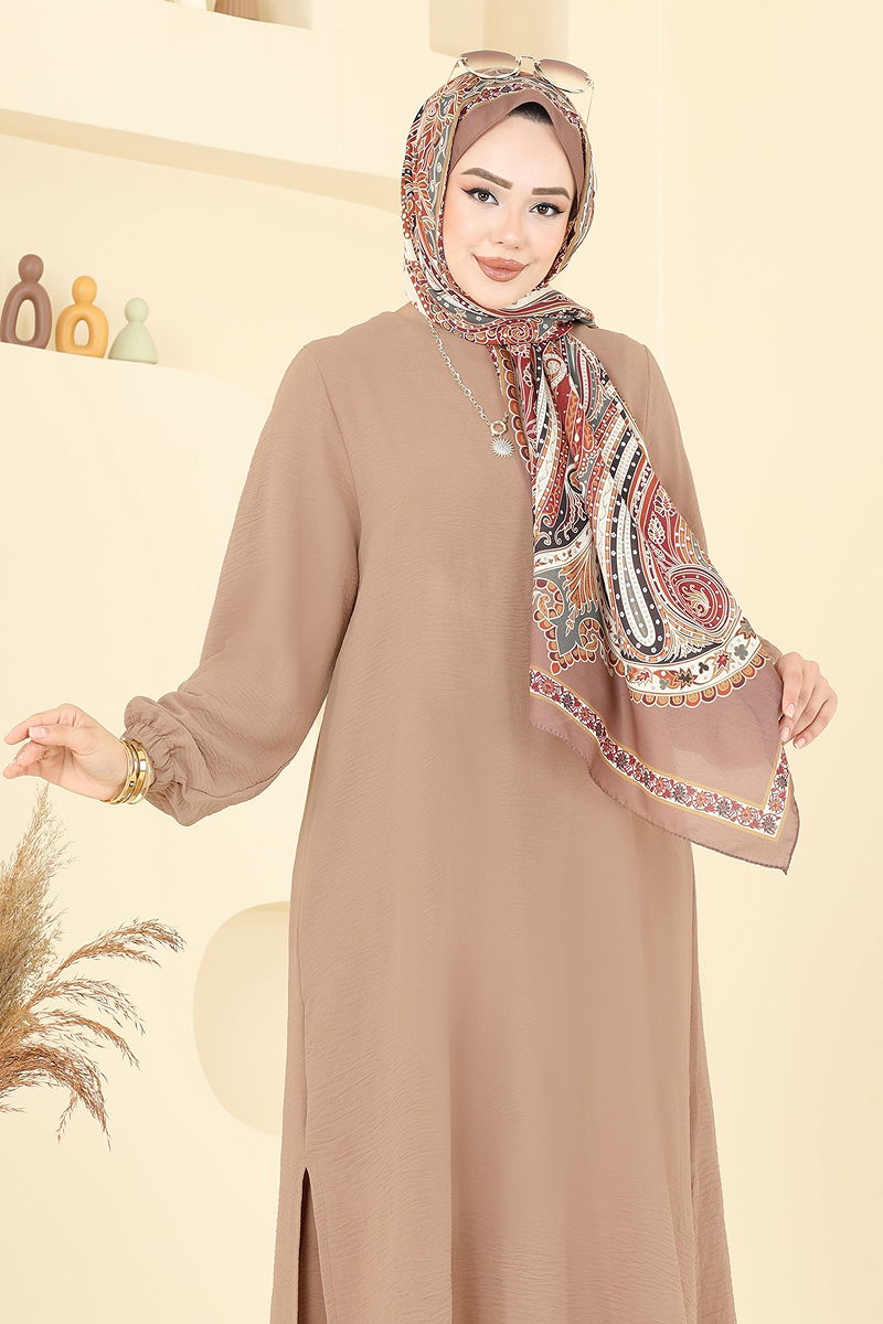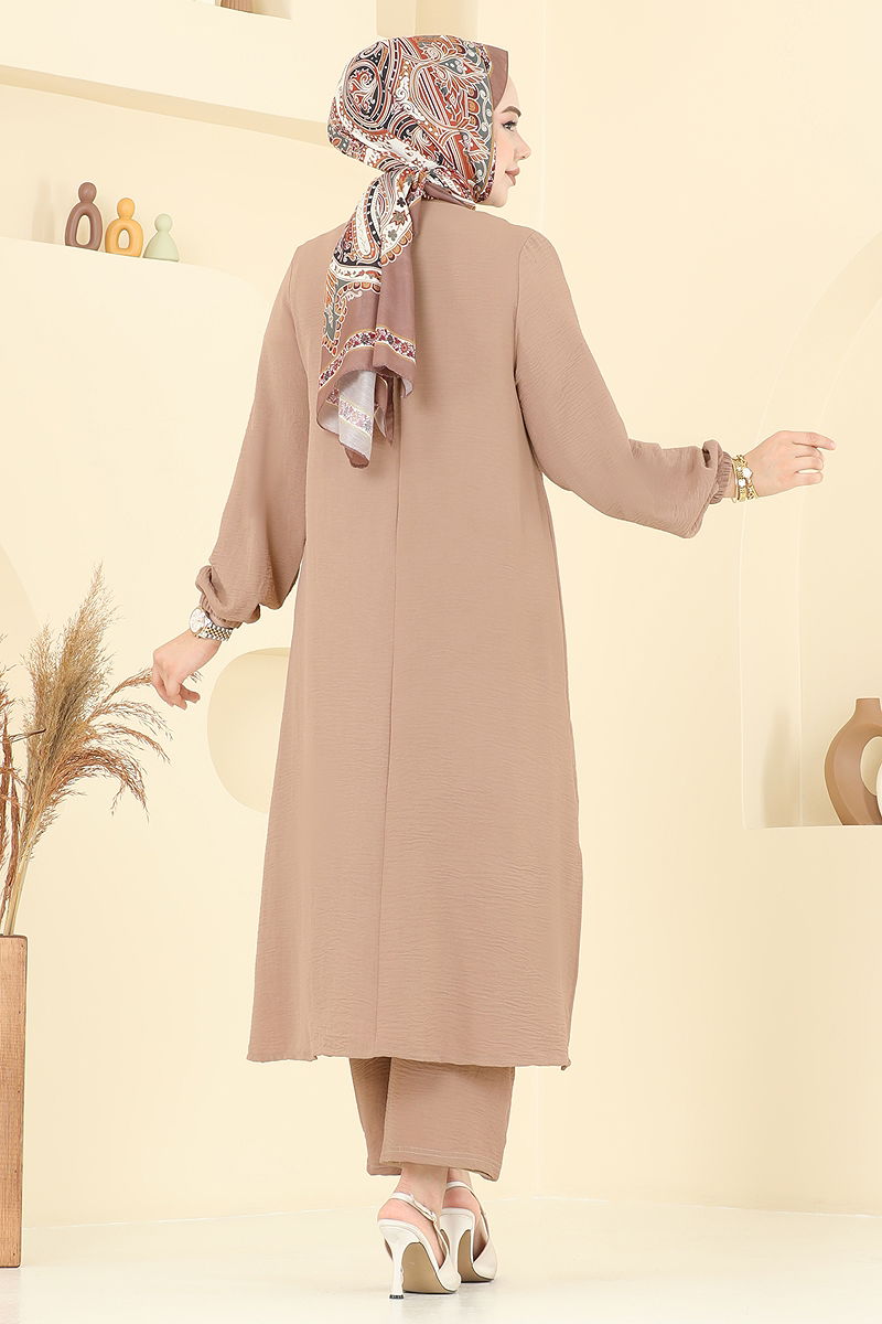 The Side Slit Aerobin Suit is a chic and modern design suitable for modest fashion enthusiasts. This outfit offers flexibility and comfort typical of Aerobin fabric, designed for all-season wear. It is washable at 30 degrees on a gentle cycle and features a bicycle neck with a side-slit tunic. The suit is practical with a zipper at the back and completed with elastic-cuffed pants, making it perfect for both everyday use and special occasions.