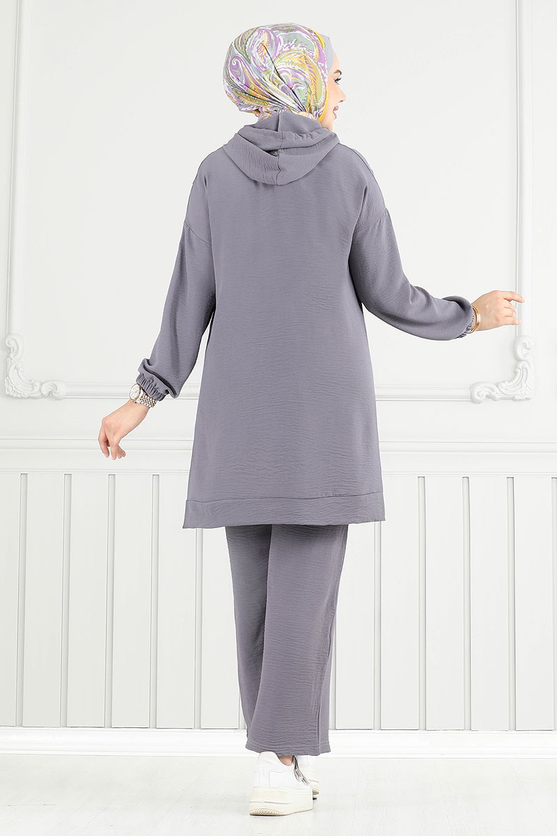 يتم ارتداء المنتج على الرأس. المنتج لديه ياقة مع قبعة. البلوز تحتوي على فتحة. غير مبطنة. تم خياطة القبعة مع المنتج تم خياطة الشعار اكسسوار معدني لا يتغير للأغمق خصر البنطال مرن. السوار مطاطي. قد يكون هناك اختلاف في الدرجة اللونية في المنتج بسبب التقاط الصور الفوتوغرافية.