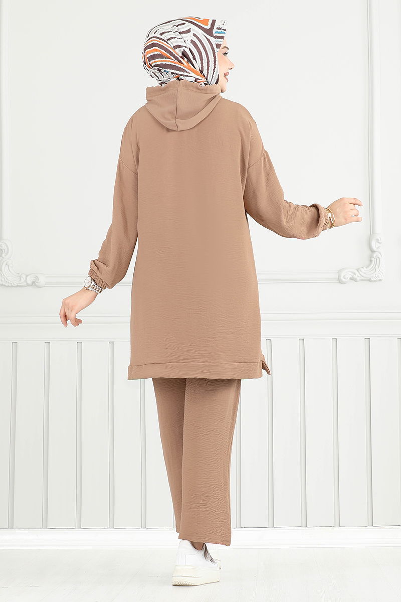 يتم ارتداء المنتج على الرأس. المنتج لديه ياقة مع قبعة. البلوز تحتوي على فتحة. غير مبطنة. تم خياطة القبعة مع المنتج تم خياطة الشعار اكسسوار معدني لا يتغير للأغمق خصر البنطال مرن. السوار مطاطي. قد يكون هناك اختلاف في الدرجة اللونية في المنتج بسبب التقاط الصور الفوتوغرافية.