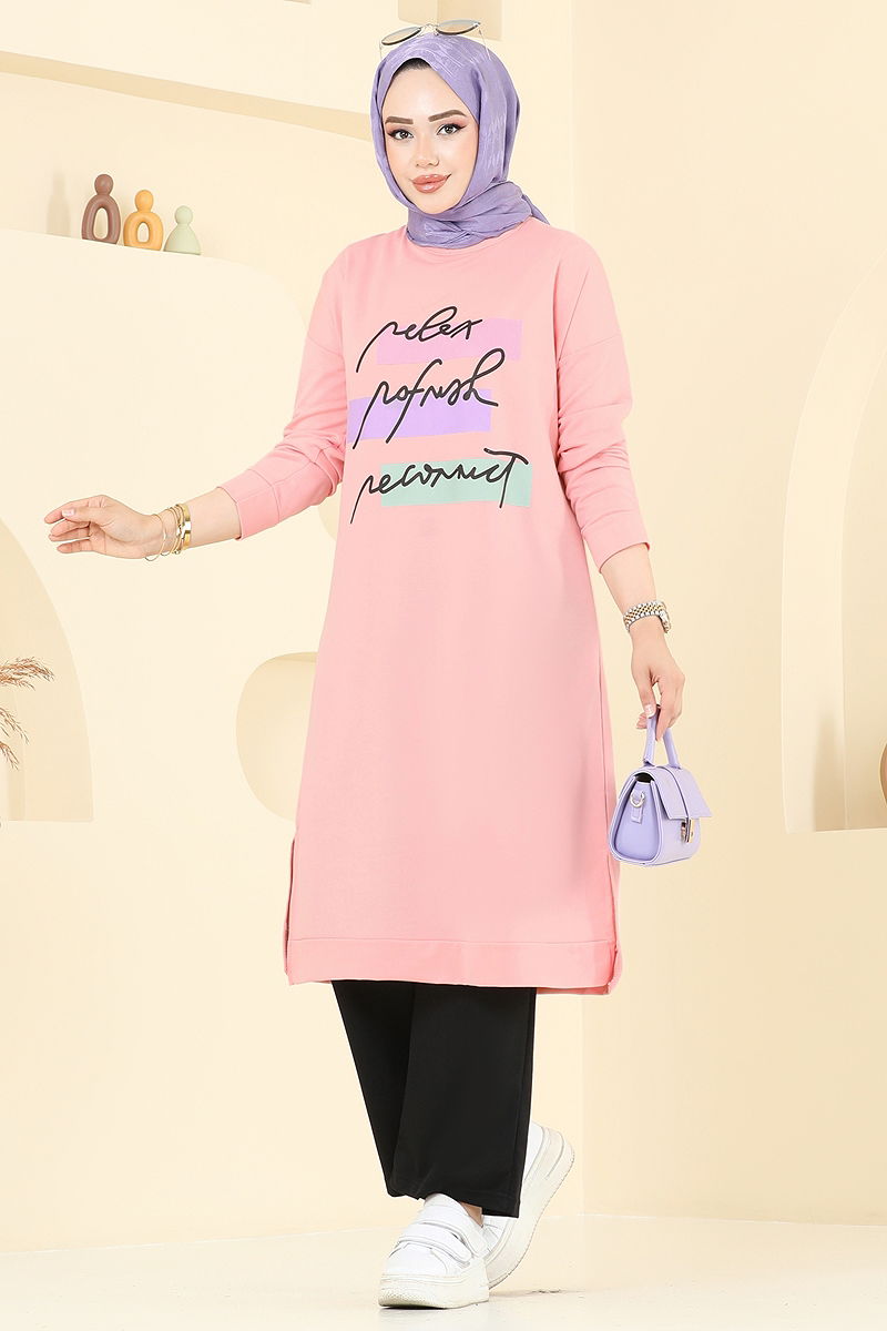 المنتج لديه ياقة دائرية. البلوز تحتوي على فتحة. غير مبطنة. النص مطبوع. خصر البنطال مرن. قد يكون هناك اختلاف في الدرجة اللونية في المنتج بسبب التقاط الصور الفوتوغرافية.