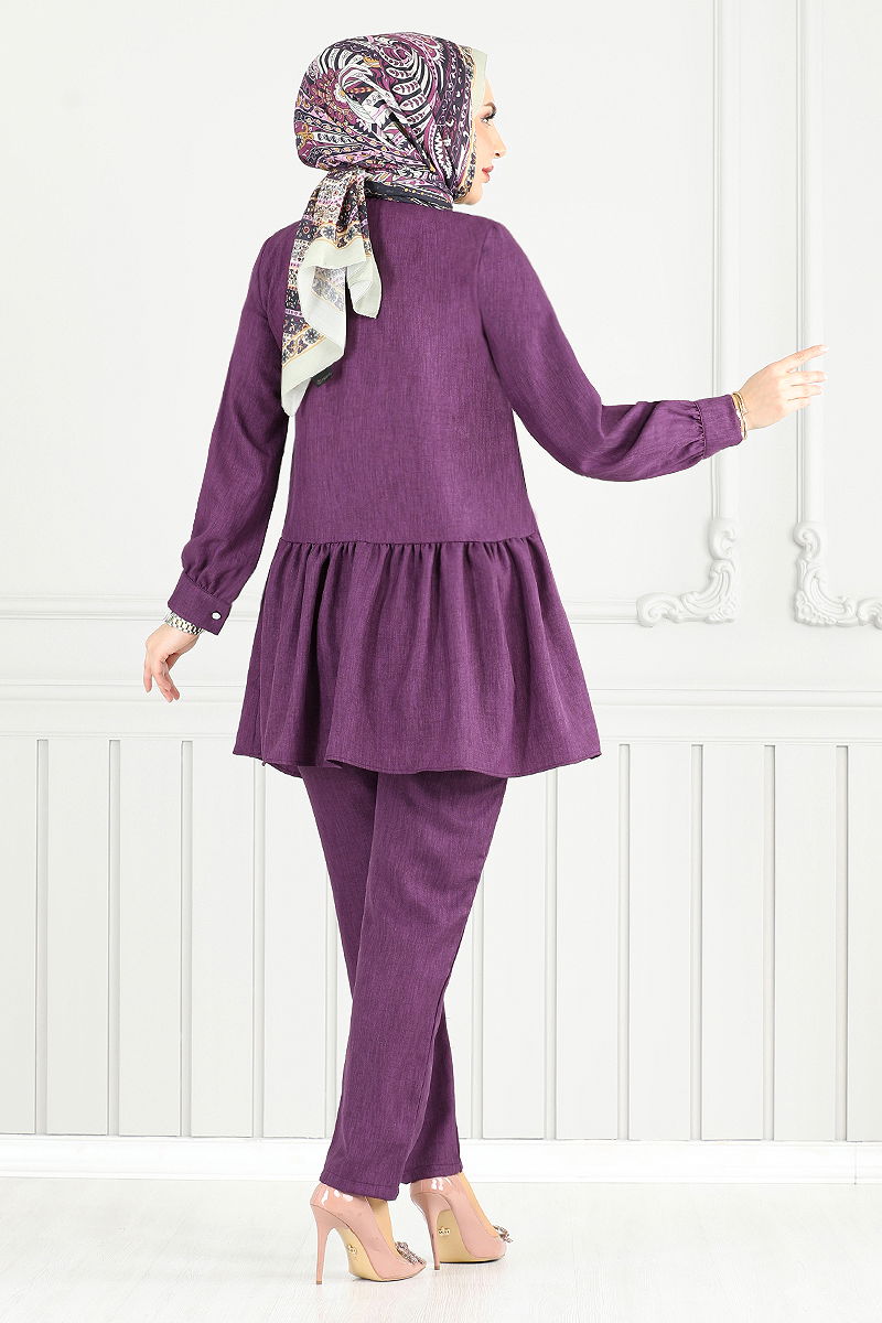 Product Feature : It is a new season hijab fashion product. The product has a Shirt collar. The product has half front buttons. Unlined. The waist of the trousers is elastic. Cuff buttons are active. There may be a tonal difference in the product due to concept photo shoots.