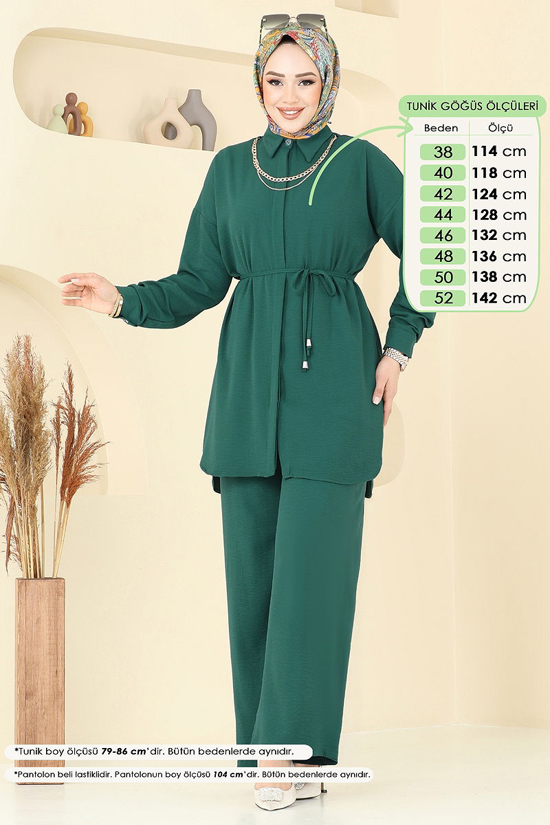 المنتج لديه ياقة القميص. المنتج به أزرار جيزلي. غير مبطنة. الحزام متضمن، ،يمكن استخدامها حسب الرغبة القلادة متضمنة واختيارية يمكن استخدامها حسب الرغبة البلوزة غير متضمنة. صُنعت عينة من المجموعة مع البلوزة لإظهار الاستخدام المقصود للمنتج. خصر البنطال مرن. أزرار الكفة نشطة. قد يكون هناك اختلاف في الدرجة اللونية في المنتج بسبب التقاط الصور الفوتوغرافية.