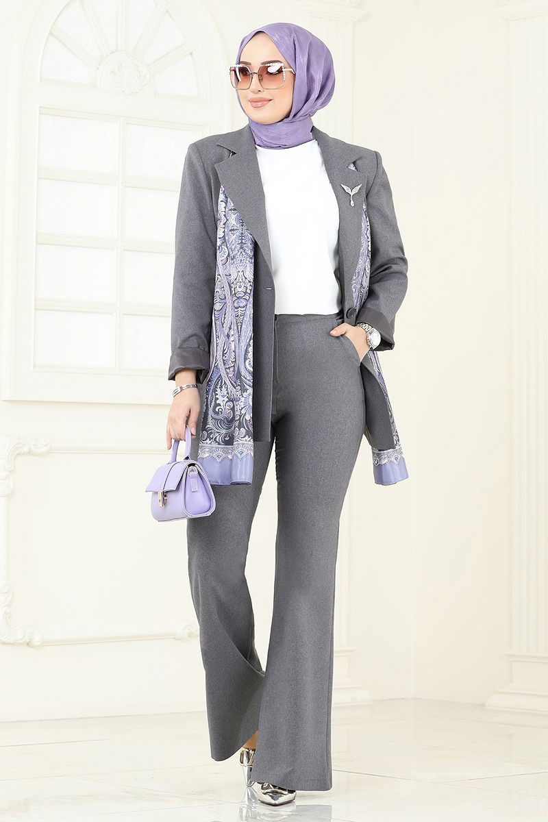 The Lined Crossover Collar Suit model is an ideal choice for women who embrace the modest clothing style! This product, which can be comfortably used in all four seasons, facilitates maintenance with the possibility of gentle washing at 30 degrees. Poliviscose fabric offers both comfort and elegance. It completes the elegance with a crossover collar and lining detail, and provides practical use with a button at the front and a zipper at the front of the pants. Both the jacket and pants have pocket details that enhance the chic look. Be ready for the day in every way!