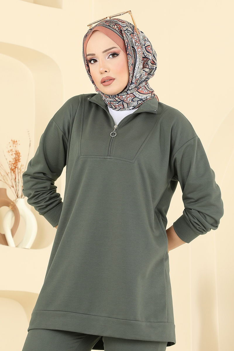 يوجد سحاب نصفي يمكن استخدامه من الأمام. المنتج لديه ياقة مستقيم. خصر البنطال مرن. قد يكون هناك اختلاف في الدرجة اللونية في المنتج بسبب التقاط الصور الفوتوغرافية.