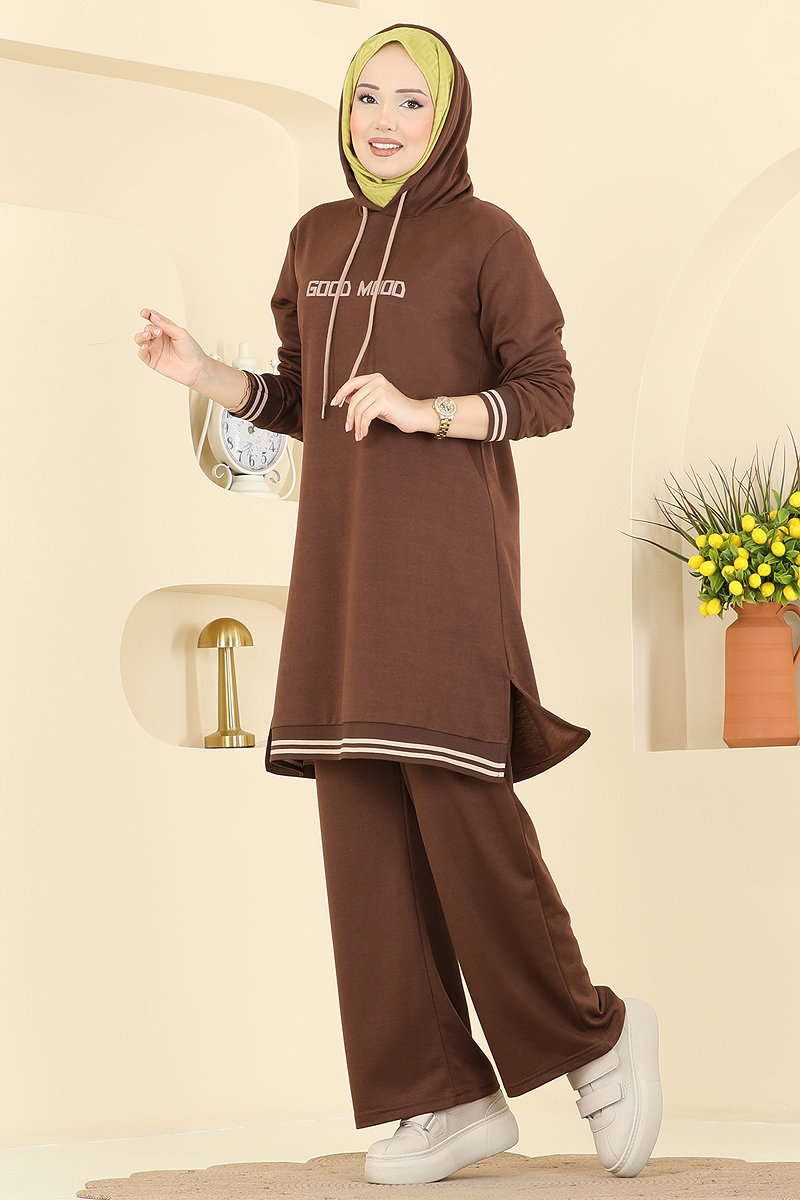 المنتج لديه ياقة مع قبعة. البلوز تحتوي على فتحة. غير مبطنة. النص مطبوع. تم خياطة القبعة مع المنتج خصر البنطال مرن. .كم بحافة مضلعة قد يكون هناك اختلاف في الدرجة اللونية في المنتج بسبب التقاط الصور الفوتوغرافية.