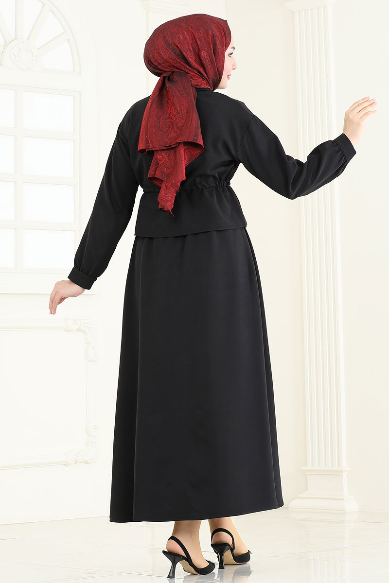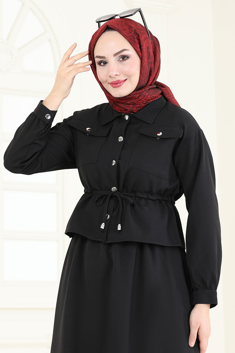 يحتوي على كبسات المنتج لديه ياقة القميص. غير مبطنة. المنتج بأربطة. البلوزة غير متضمنة. صُنعت عينة من المجموعة مع البلوزة لإظهار الاستخدام المقصود للمنتج. الجيب الصدري نشط. .خصر التنورة مرن كبسات الأكمام مفعلة قد يكون هناك اختلاف في الدرجة اللونية في المنتج بسبب التقاط الصور الفوتوغرافية.