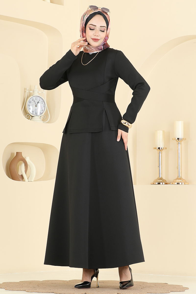 المنتج لديه ياقة دائرية. البلوز تحتوي على فتحة. غير مبطن .الداخل غير شفاف. المنتج به سحاب في جزء من الخلف. يتم خياطة الحزام على المنتج. .خصر التنورة مرن قد يكون هناك اختلاف في الدرجة اللونية في المنتج بسبب التقاط الصور الفوتوغرافية.
