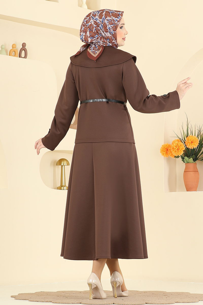 Product Feature : It is a new season hijab fashion product. The product has a Cycling collar. The product has From the front buttons. Unlined. Belt included, optional not available. The skirt waist is elastic. Cuff buttons are accessories. There may be a tonal difference in the product due to concept photo shoots.