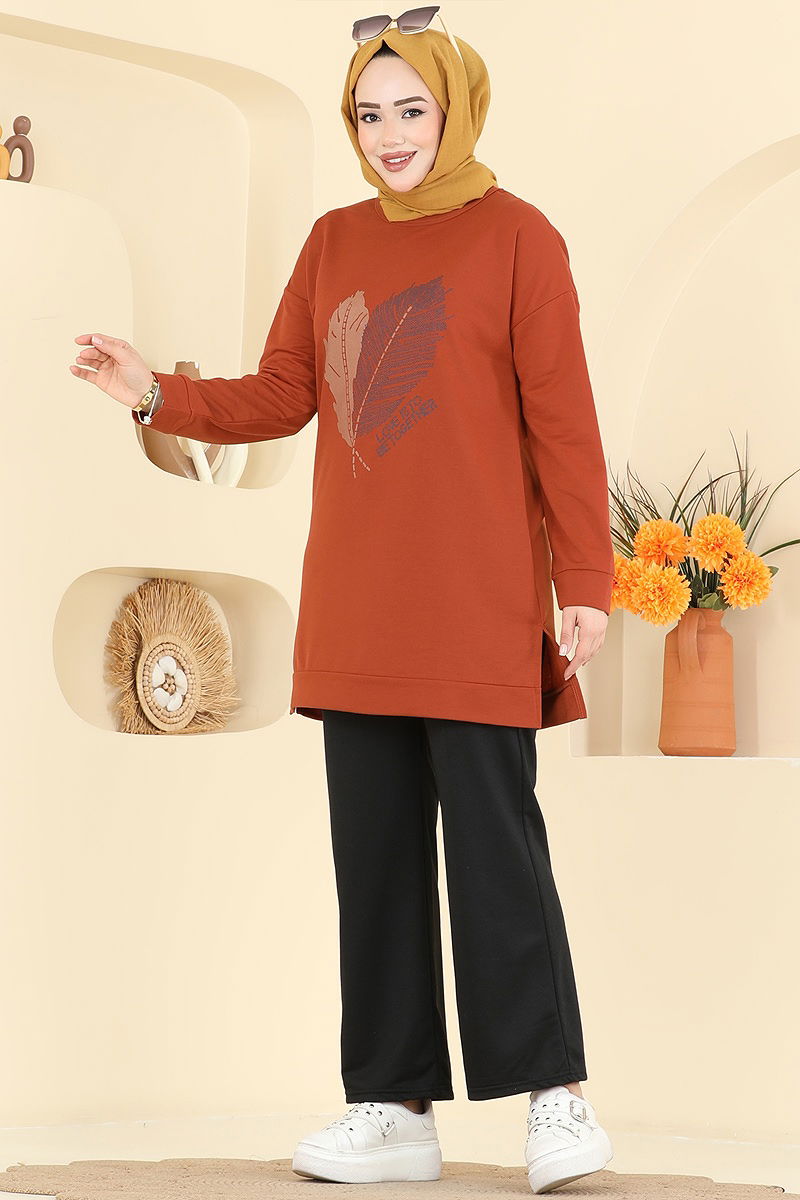 Product Feature : It is a new season hijab fashion product. The product has a Cycling collar. Unlined. The writings are in print. The waist of the trousers is elastic. There may be a tonal difference in the product due to concept photo shoots.