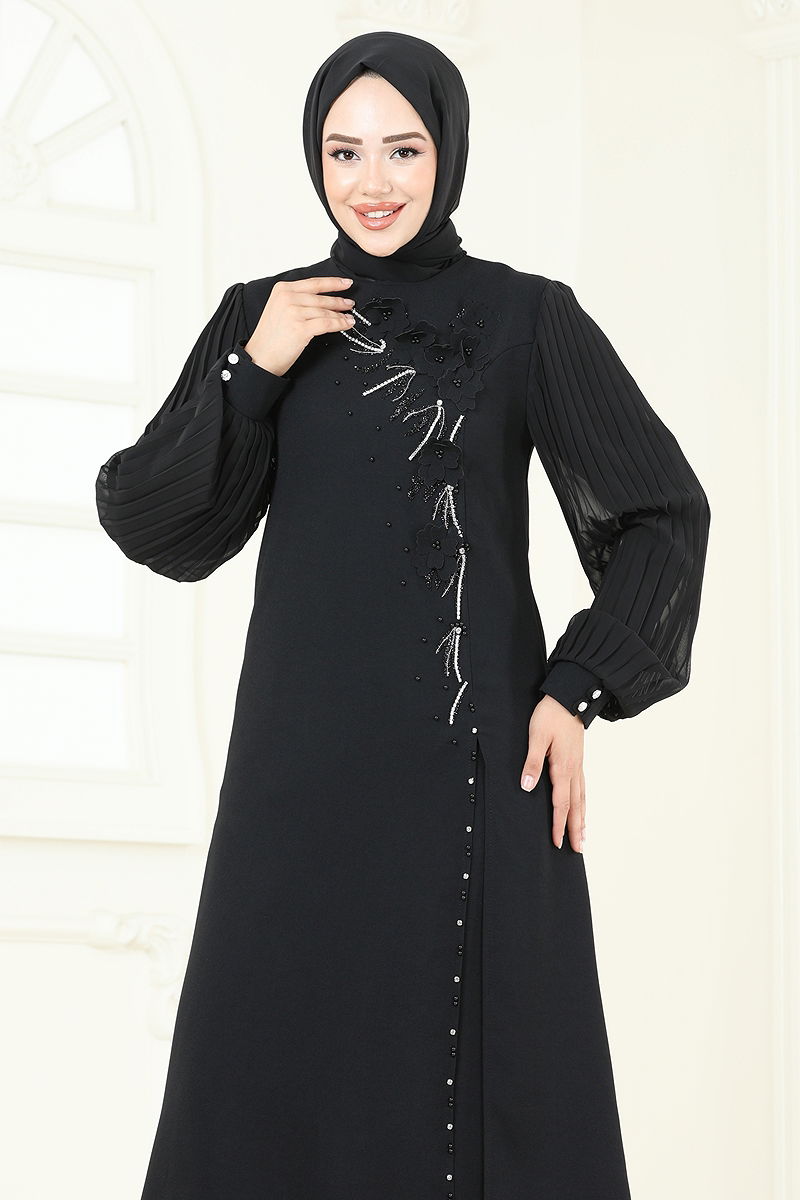 Product Feature : It is a new season hijab fashion product. The product has a Cycling collar. The tunic has a side slash.. Unlined. The product has a zipper at the from the back part. Bead details are my pocket knife. The stones are glued. The waist of the trousers is elastic. Cuff buttons are active. There may be a tonal difference in the product due to concept photo shoots.