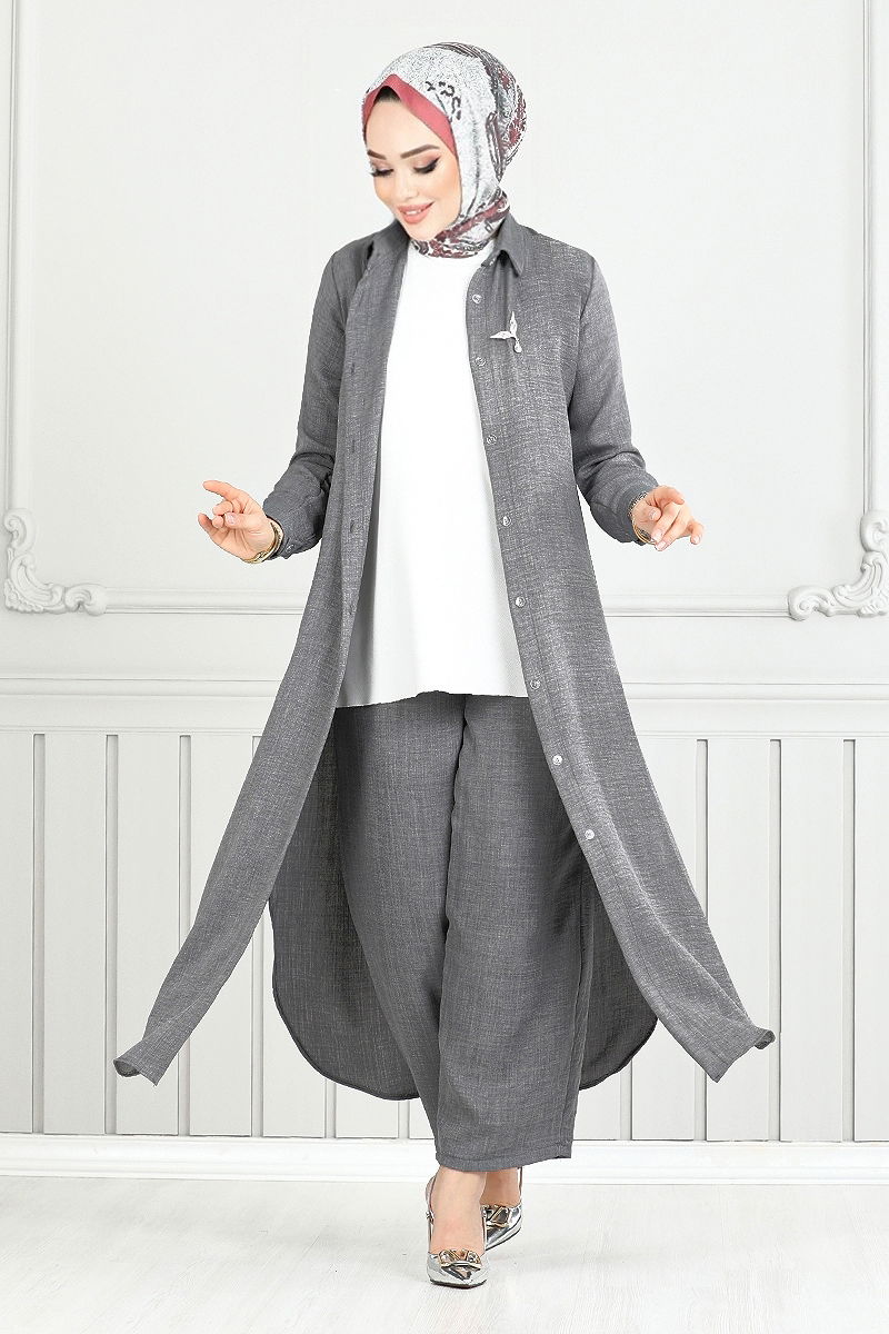 طقم رمادي غامق