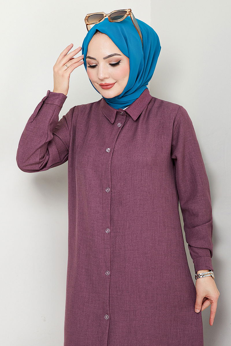 Product Feature : It is a new season hijab fashion product. The product has a Shirt collar. The product has From the front buttons. The tunic has a side slash.. Unlined. The waist of the trousers is elastic. Cuff buttons are active. There may be a tonal difference in the product due to concept photo shoots.