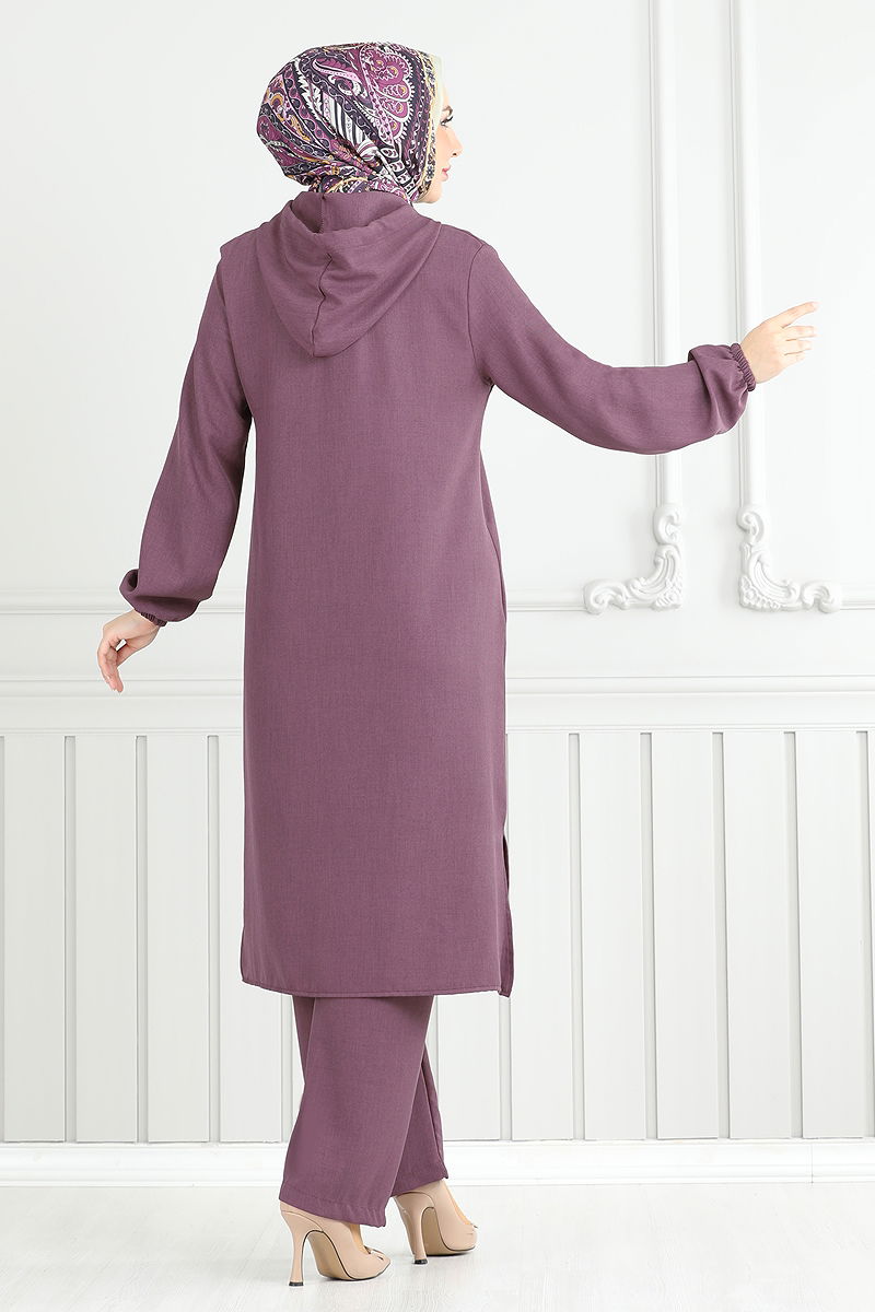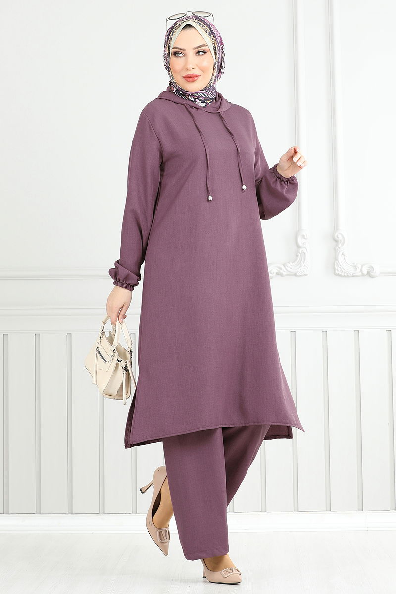 Product Feature : It is a new season hijab fashion product. The product has a Hooded collar. The tunic has a side slash.. Unlined. The hood is sewn to the product. The waist of the trousers is elastic. The cuff is rubberized. There may be a tonal difference in the product due to concept photo shoots.