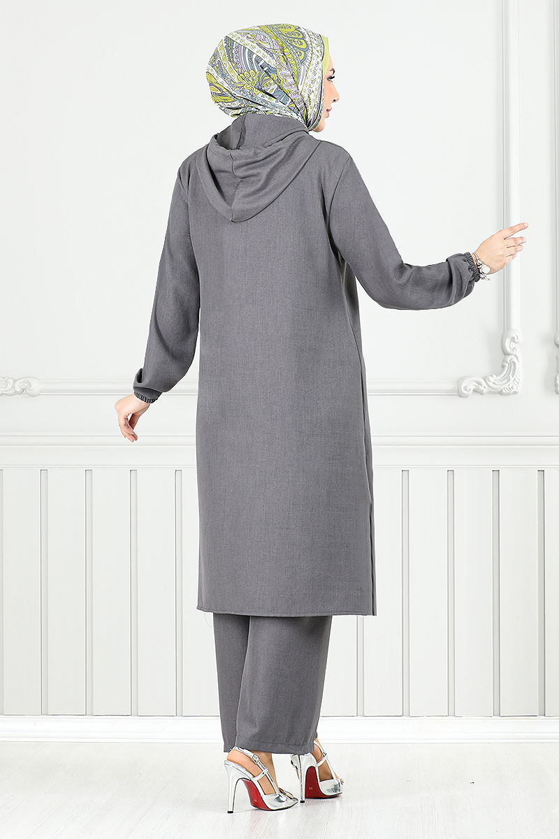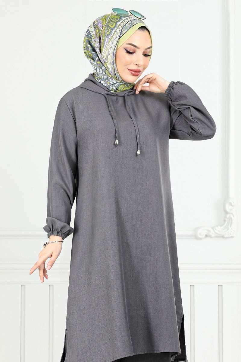 Product Name: Hooded Linen Suit COMBINATION; This chic and comfortable hijab suit is suitable for use throughout the four seasons. Cleaned at 30 degrees with delicate wash, this suit is made from high-quality linen fabric. The tunic, featuring hood and elasticated cuffs, offers freedom of movement with its side slits. The elastic waistband of the pants provides a comfortable fit. Whether for everyday wear or special occasions, it offers both comfort and elegance.